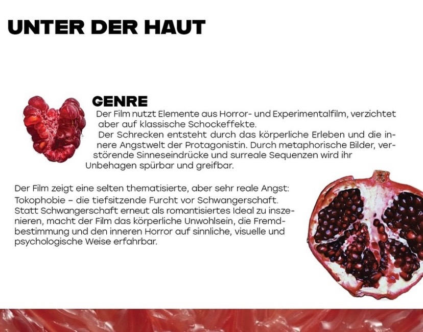 Unser Projekt beschäftigt sich mit Tokophobie, der Angst vor Schwangerschaft, und erzählt aus der Perspektive einer jungen Frau, deren körperliches Erleben im Mittelpunkt steht.