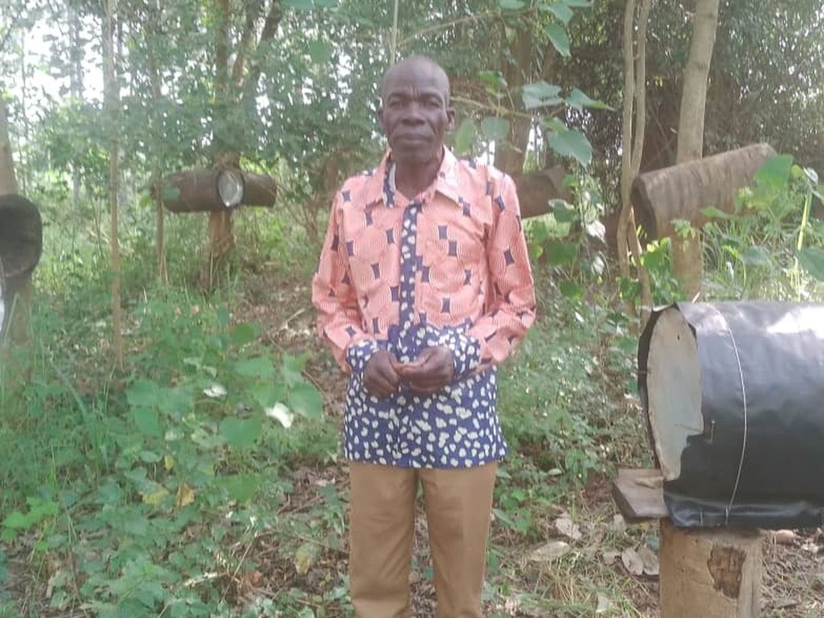 Diese Gruppe von Kleinbauern aus Uganda, zu denen Geoffrey gehört, benötigen dringend unsere Unterstützung, um die Bienenhaltung an die lokalen Gegebenheiten angepasst zu verbessern und auszubauen.