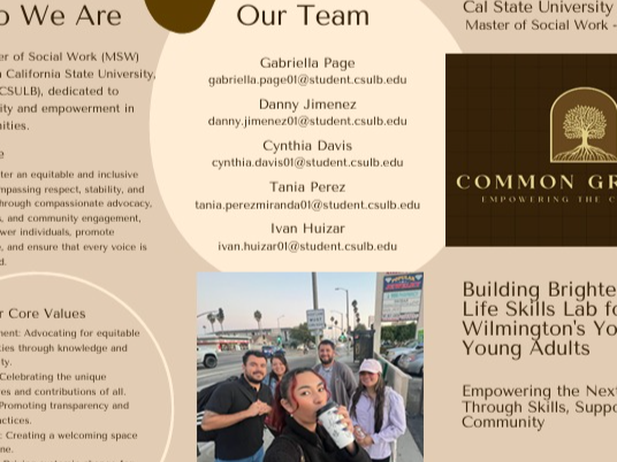We are the Common Grounds team, a group of passionate Master of Social Work students from California State University, Long Beach. Our mission is to address homelessness and housing instability in Wilmington, CA, by equipping youth and young adults with essential life skills through our Life Skills Lab initiative.