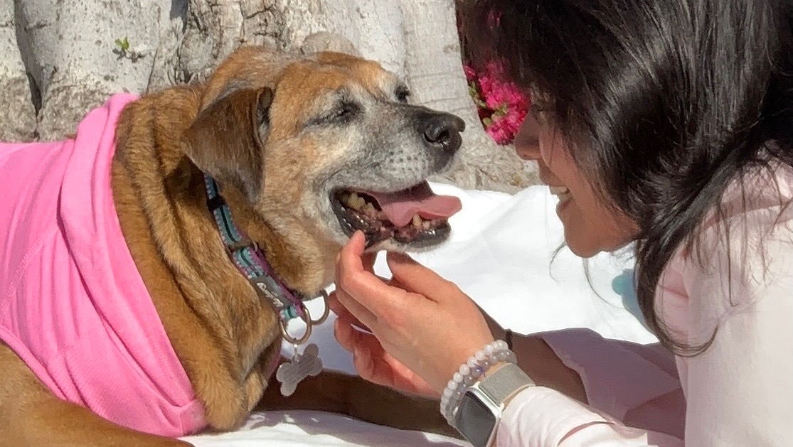Tia came to live with me 5 years ago. She hasn’t always had the easy life. She was an abused & neglected dog in her younger years . They named her Pia which stood for Pain In The Ass. Thankfully she was rescued from that unloved, sad life. She found a new loving home with her Papa Karta. He changed her name to Tia which means goddess. Her new name fit her perfectly. Her Papa Karta unfortunately passed away and left Tia without a family. And that’s how Tia came into my life. I saw her photo and it was love at first sight for me. I wanted to make my home her forever home. I couldn’t be happier with my decision to open my heart and home to her. She’s been my everything after the untimely passing of my mom & brother. Tia has brought beautiful healing light to my life after so much darkness. Her presence in my home has made it just that. Our comfy home. She has been my bright, beautiful light. I couldn’t ask for a better companion to be able to navigate through this life.
