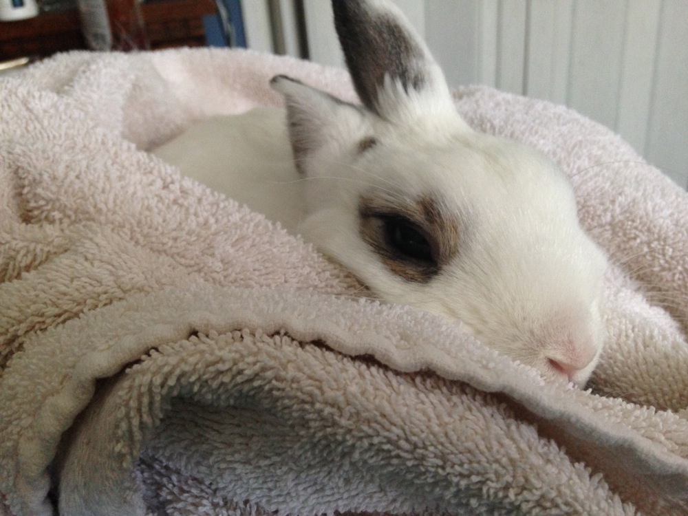 Unfortunetly Bun Bun has devloped gastrointestinal stasis. This is the slowing down of the intestine. Which means he is not digesting his food. His stomach is enlarged. He is not pooping or eating. And without proper care this can be fatal.