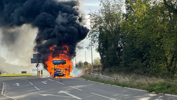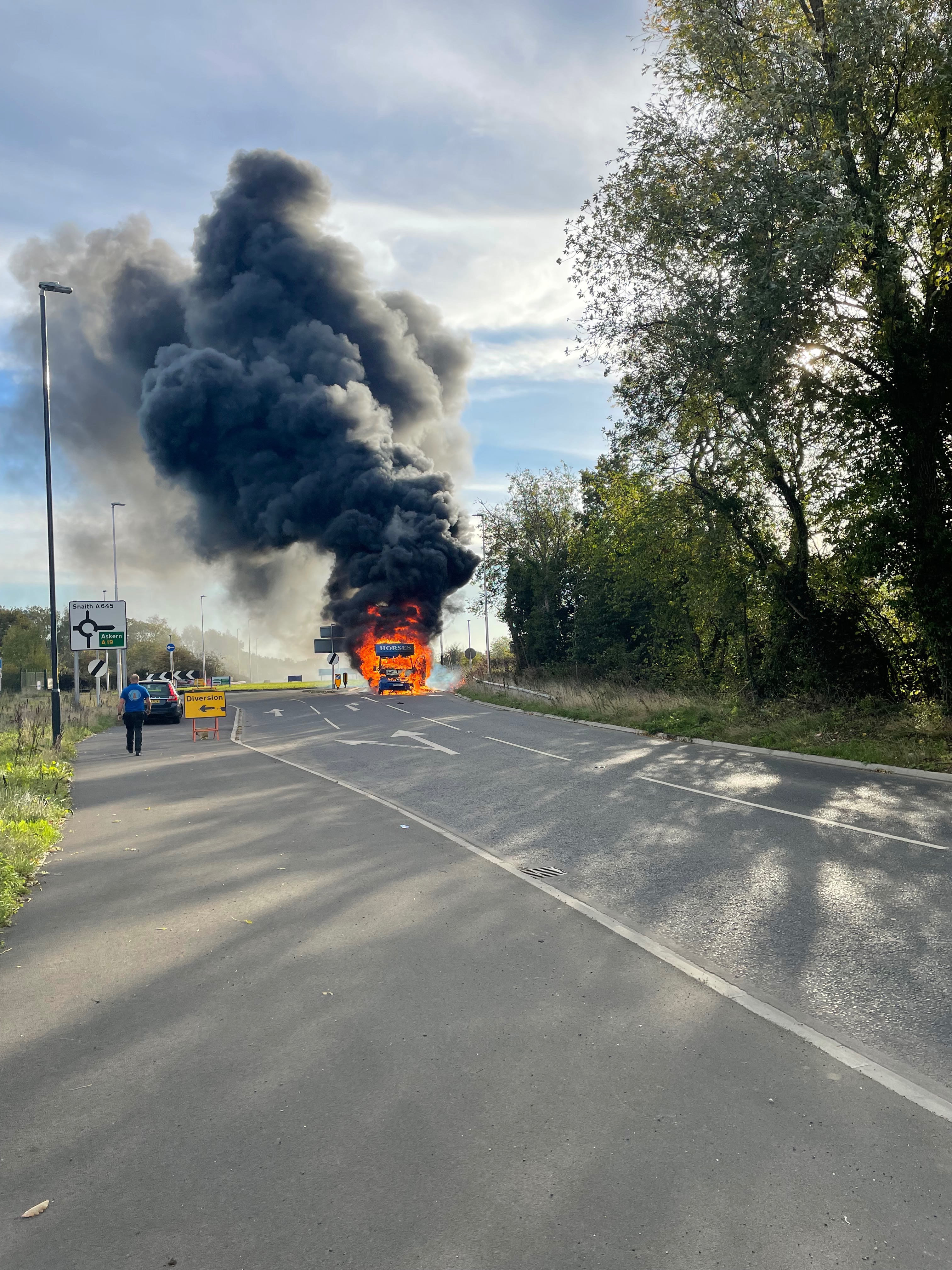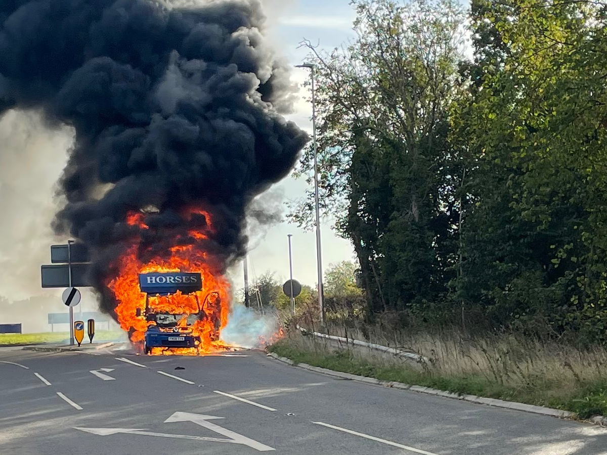 Not long after leaving the motorway, smoke began to fill the cab. The engine cut out, and within seconds, thick black smoke was pouring through the horsebox. Our only thought was for the horses. They are our partners and our best friends - nothing else mattered but getting them to safety. Through the smoke and chaos, we managed to get both horses off the box safely.