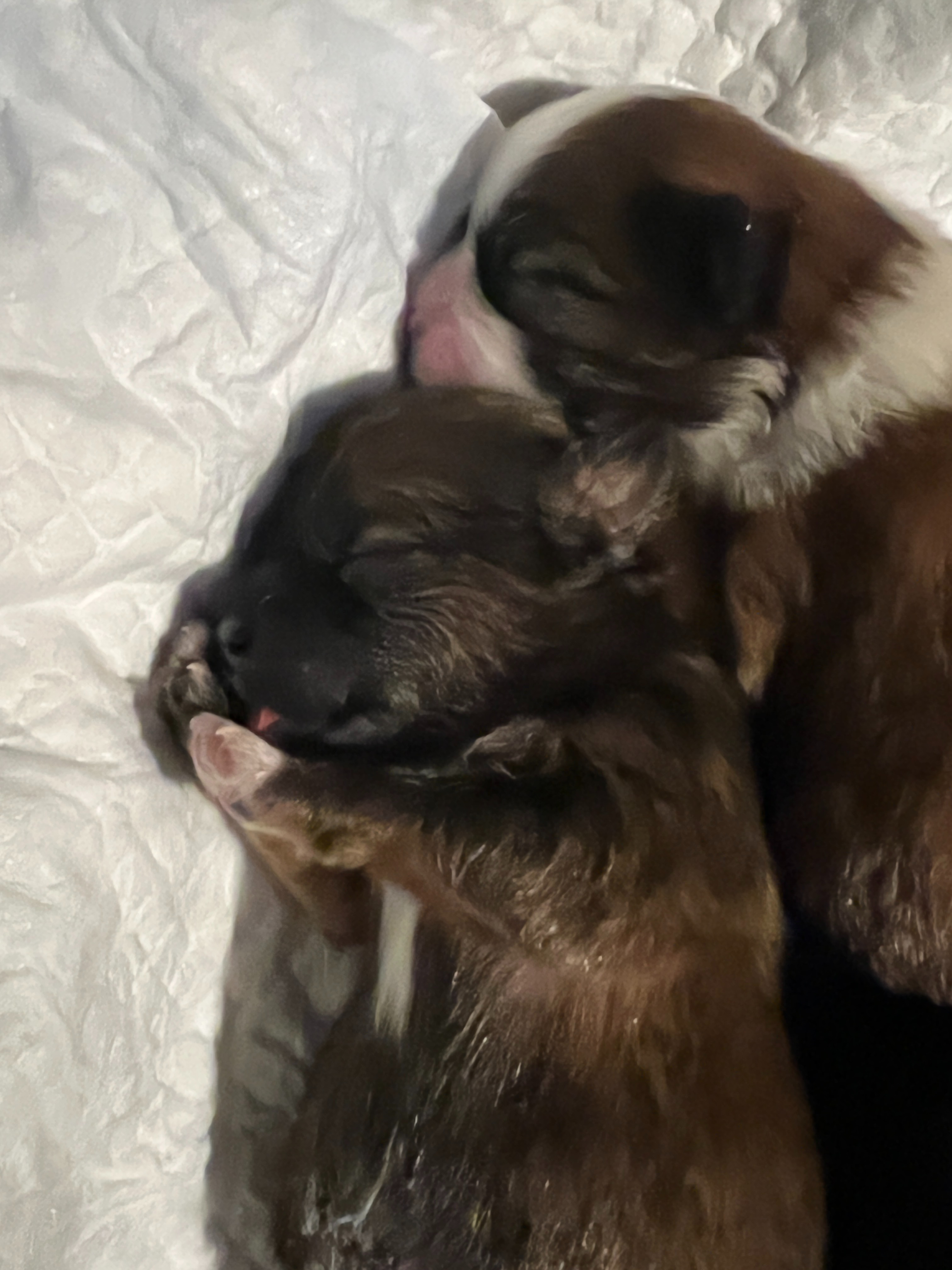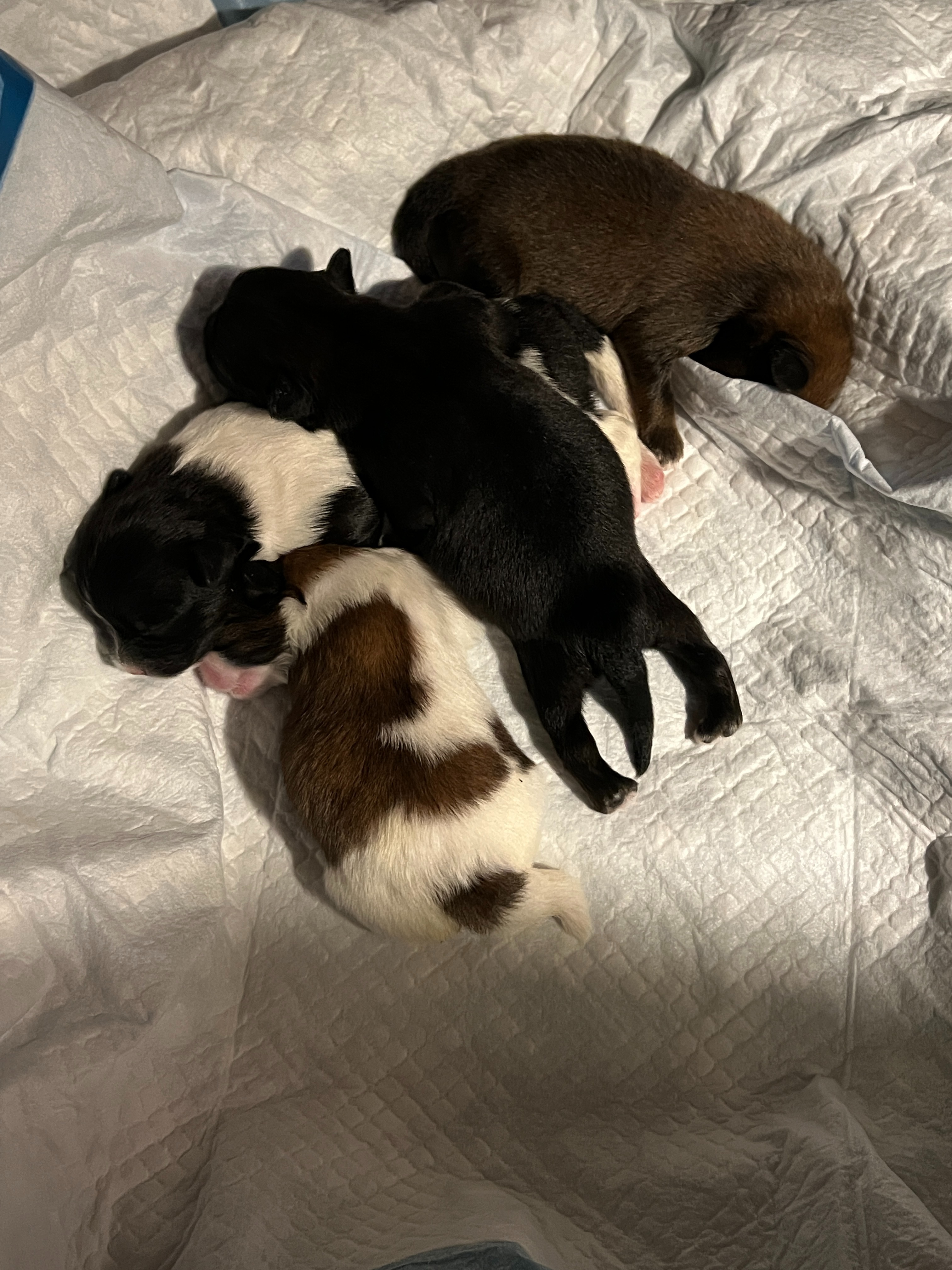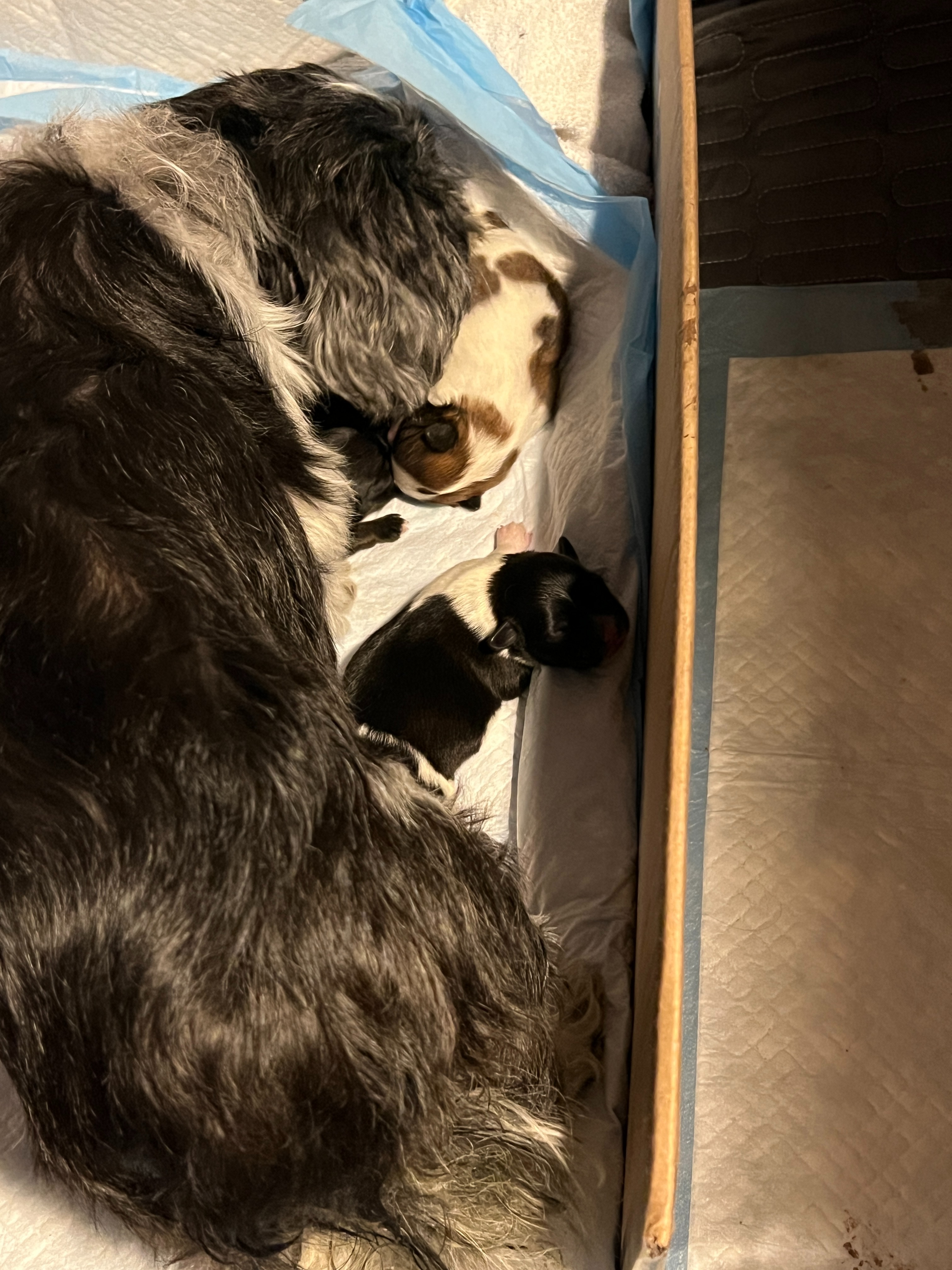 Daisy gave birth last Wednesday, August 20, my partner Nick was her doula, and although we lost the first puppy, four were born healthy and happy.