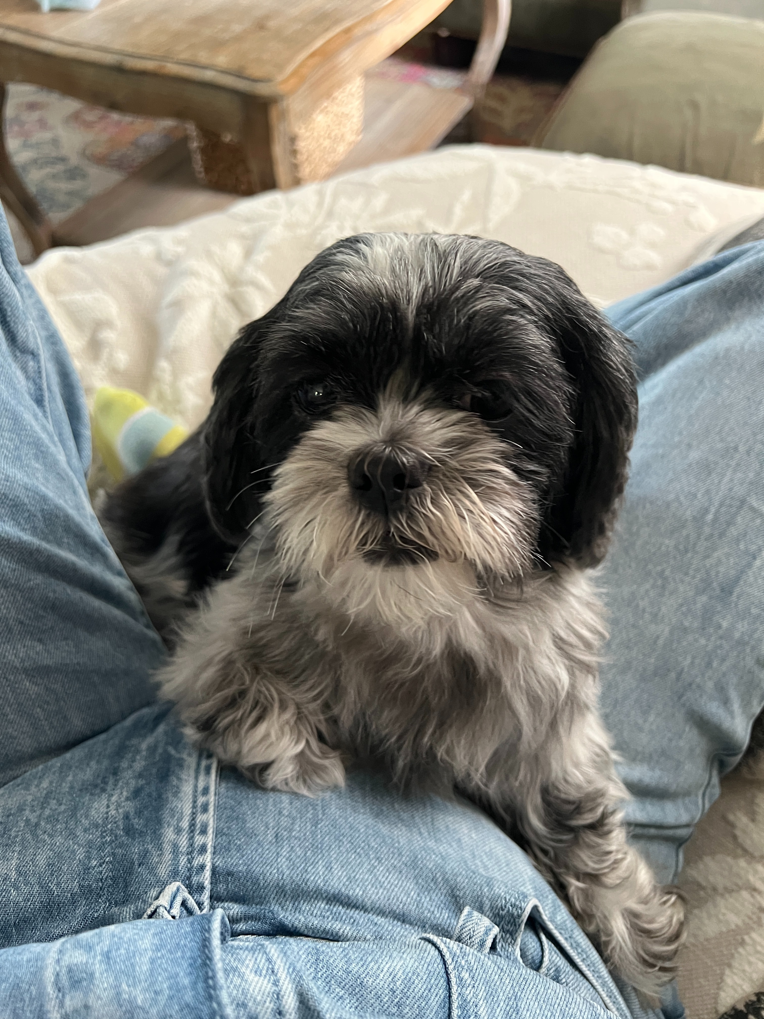As some of you know, I inherited Naomi’s 7-year old, VERY pregnant shih tzu, Daisy. My sister, who was disabled and very cloistered during the pandemic, had only a couple close friends and her animals around her during those hard days. Later on as she recovered from surgery, we would sit on video calls for hours, chatting away, Naomi with Daisy on her lap.
