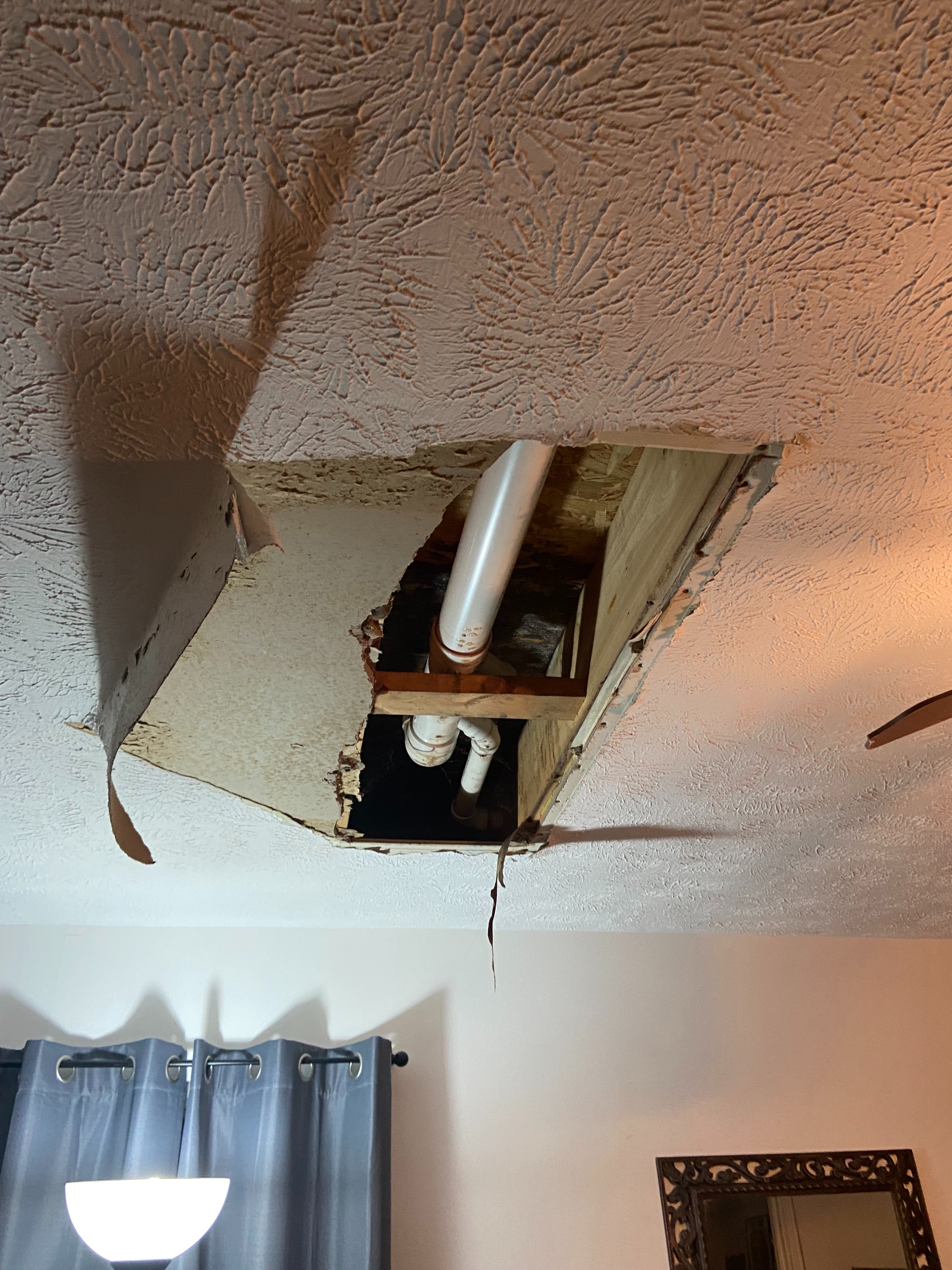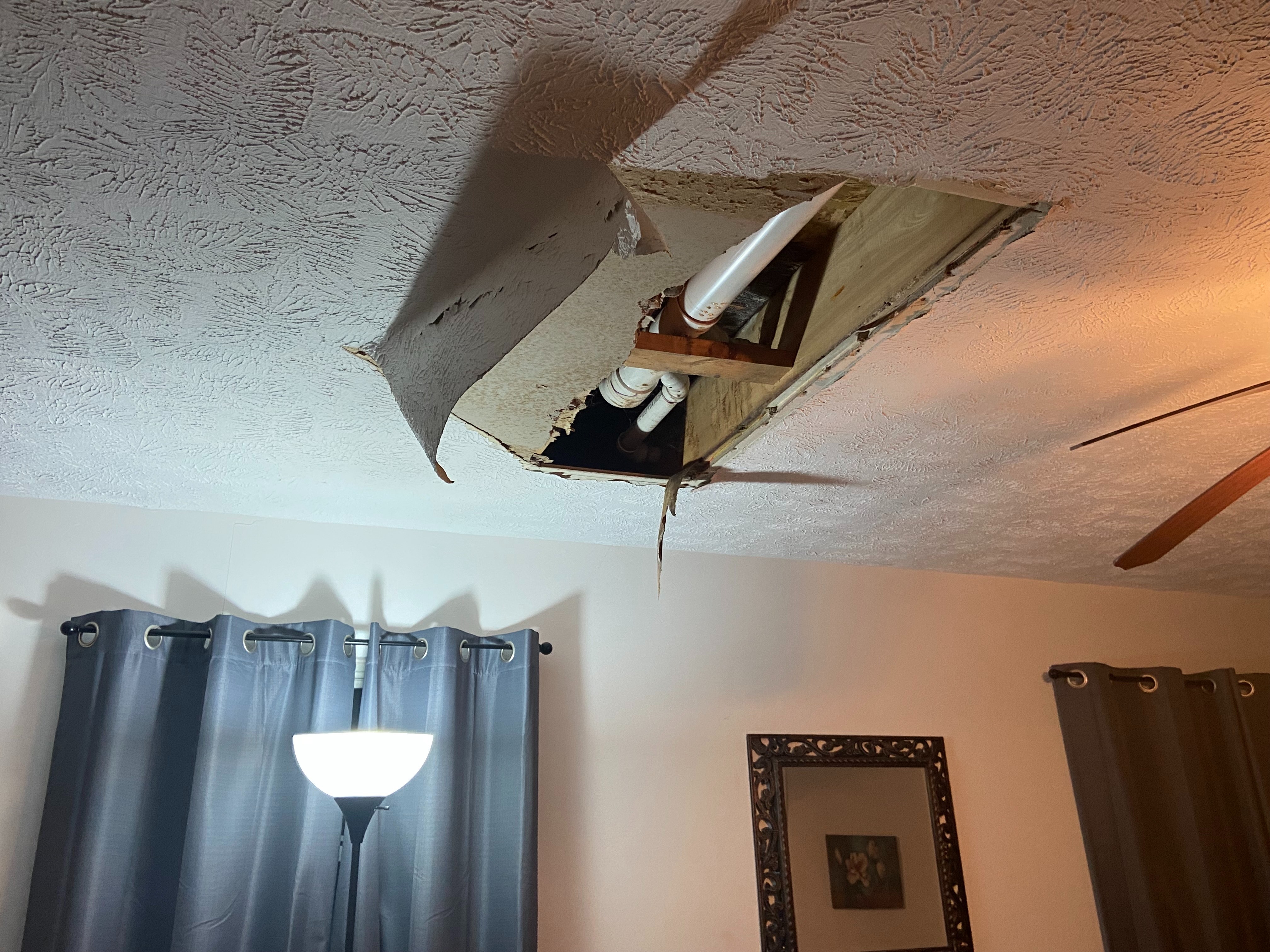 This GoFundMe was made to raise emergency funding to cover the costs of the homeowner's insurance deductible and subsequent repair costs for the water and mold damages in the ceiling of our first-floor living room/second-floor hallway bathroom floor. The sudden, gaping hole in the photos below occurred today, Monday, May 19, 2025, and homeowner's insurance wants a $2,500 deductible paid before they will do anything at all to help. Even then, if we are able to pay that and they send a representative or plumber out to take a look and they deduce that the damage happened over a period of time and not instantly, they won't cover any of the subsequent repair costs.