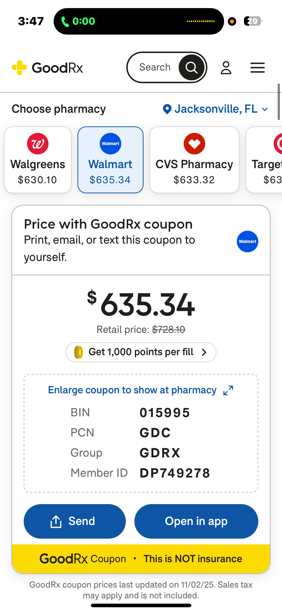 Yesterday, I was trying to pick up their Elequis, which is a heavy-grade blood thinner. Without insurance, even with a medical discount card like GoodRx, we’re looking at $630.