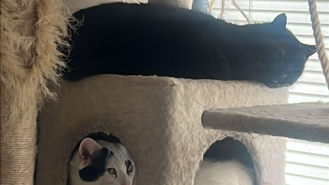 Mosby then settled down in cat tree and went to sleep. ☺️