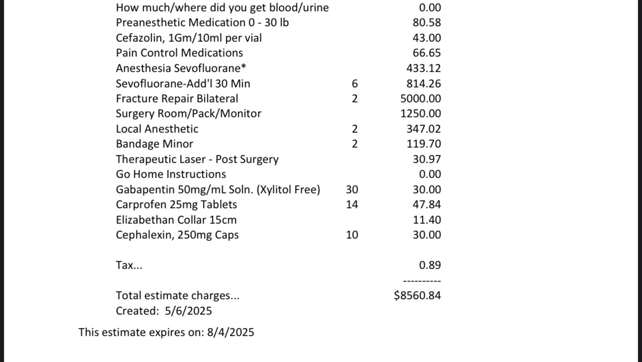 *I’ve spent $1,600 plus the $5,000 on her leg surgery.