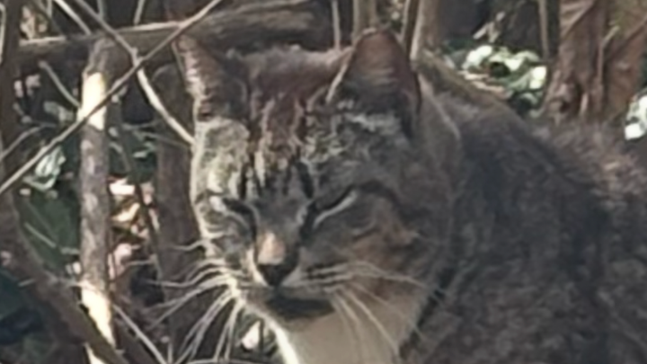 There is a very sick tabby cat who appears to have a URI, drooling from the mouth with raspy breathing. Also, one of the calico cats is pregnant; this is her third litter according to the neighbor.