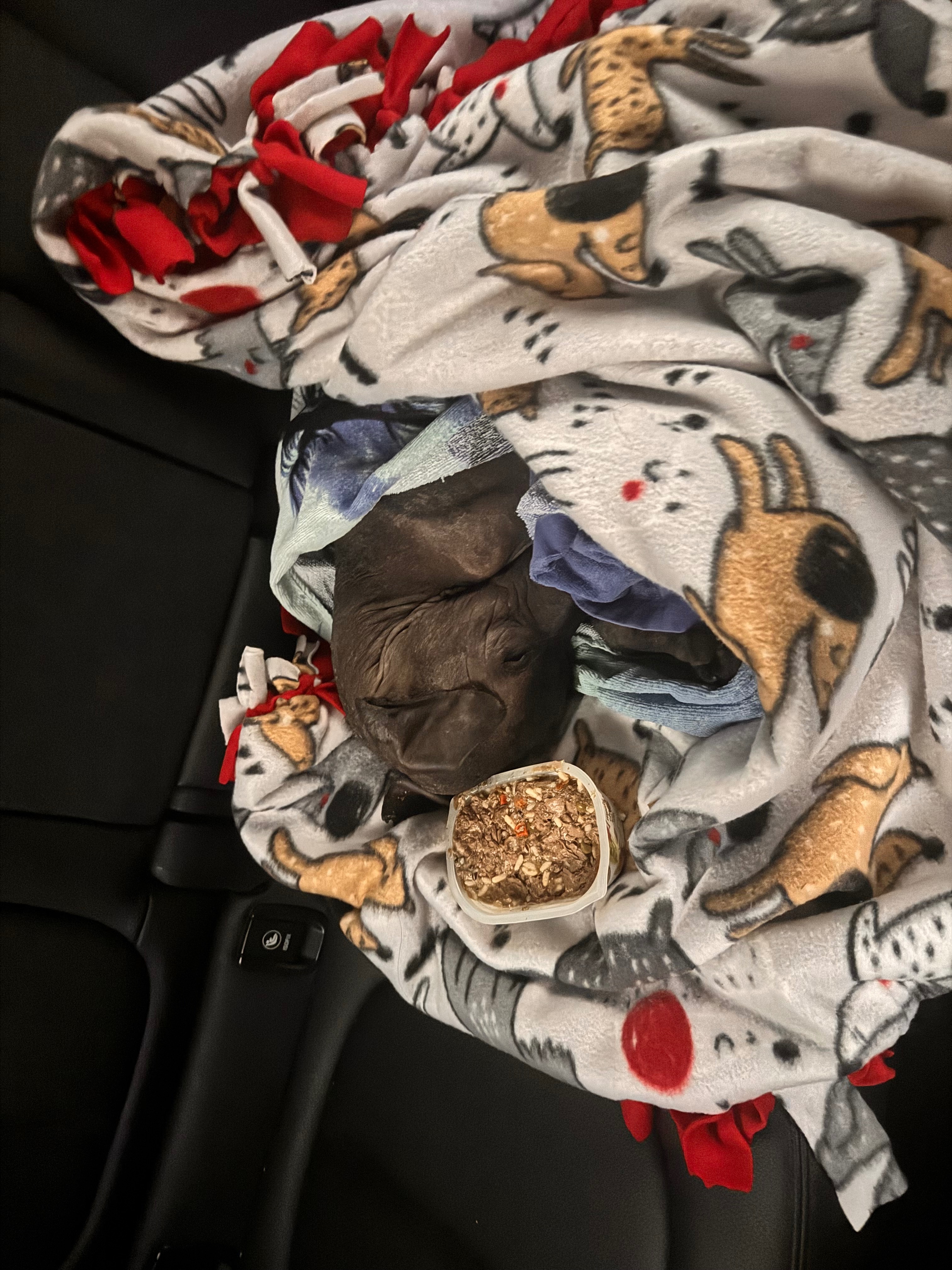 This beautiful, sweet baby was posted on our community Facebook page, and so many of us dove into action to find him. He was found hiding from the rain, bundled up in a blanket. I brought him to the emergency vet, and in order to begin treatment, I needed to assume responsibility.