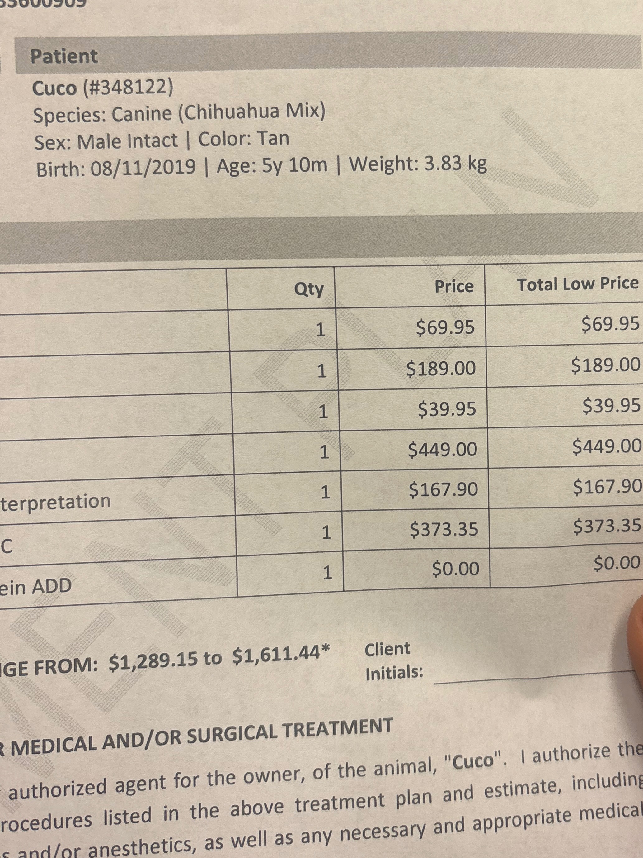The vet told me Cuco needs immediate surgery to treat the avulsion, clean the infection and prevent the damage from spreading. The total cost for everything is estimated to be around $2,000 and Today we payed around 500 dollars for him to be seen and examined to find out what he has. without this surgery they told me the only other option might be to put him down so he wouldn’t be in any more pain.