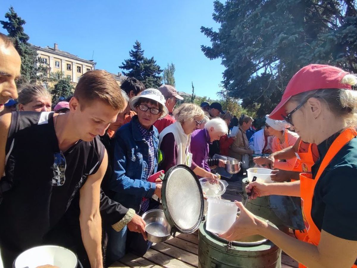The city has no gas, electric power, or water. Many people are living in the basement of buildings. They have to cook with firewood. As Winter approaches, it is very important to provide them with a hot meal.