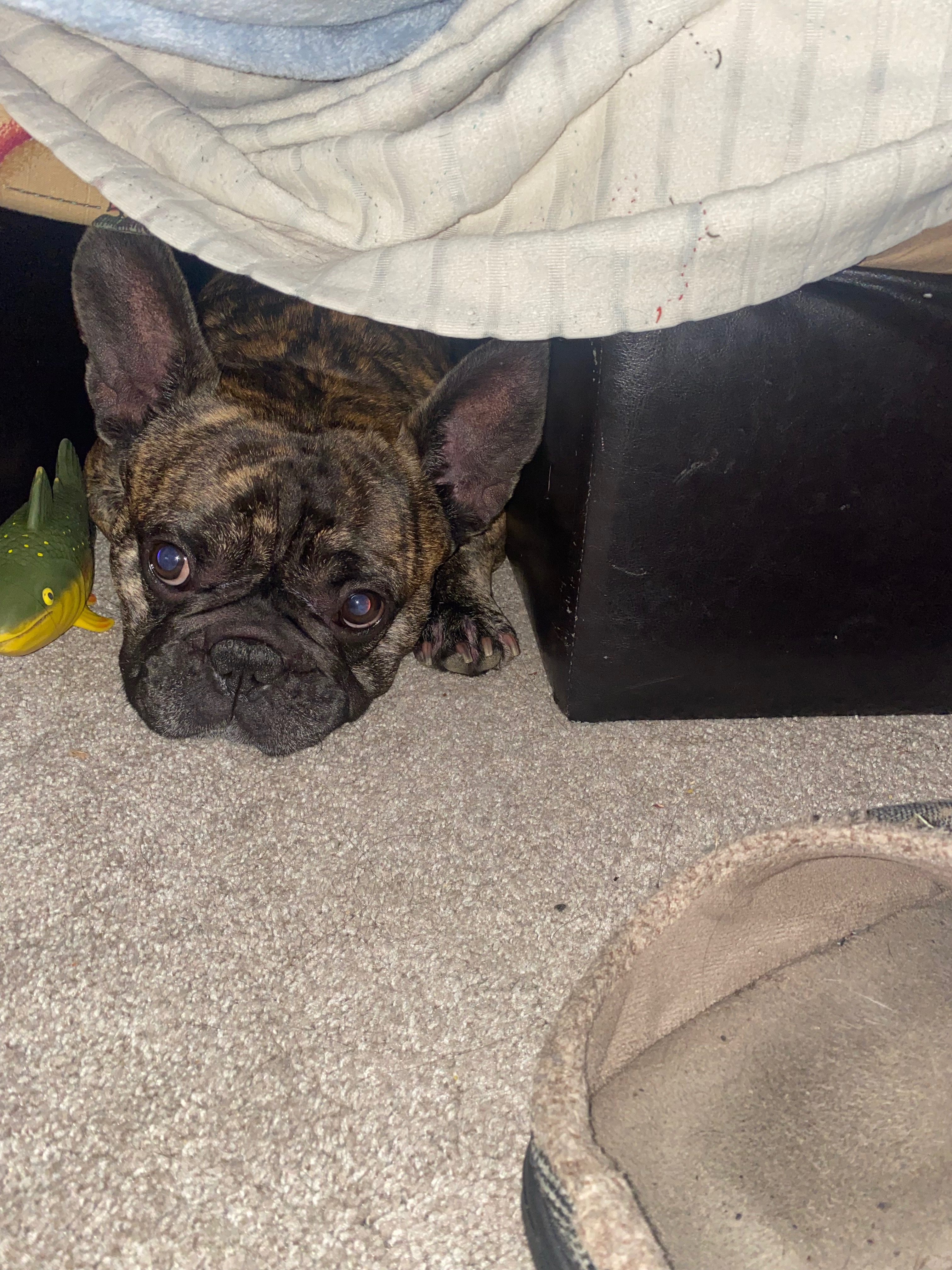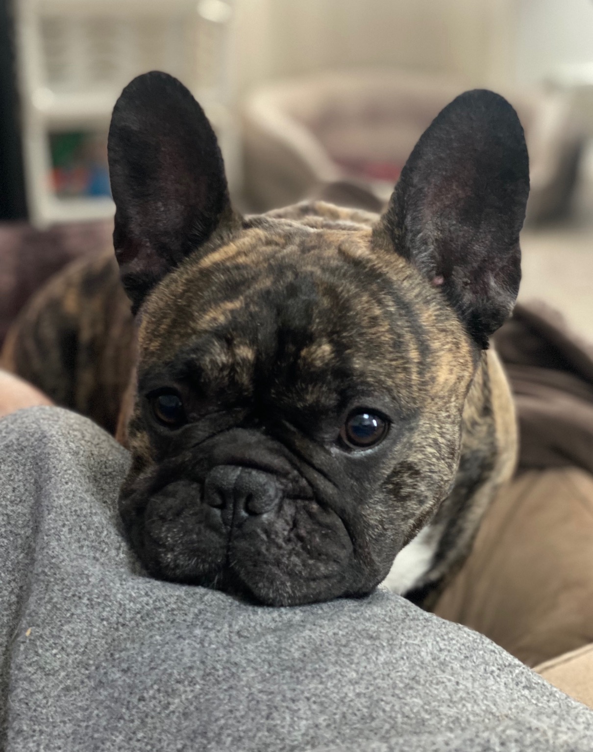 (Story time) Bruce came into our life 4 years ago at the perfect time! My wife and I had just gone through a tubular pregnancy in which her tube burst and we almost lost her. After some time and a lot of ups and downs from the loss, a friend of ours came to us with the adorable 8-week-old Frenchie puppy and we absolutely fell in love! Our friend, seeing the joy and love this little guy brought back into our life, decided he belonged with us ❤️