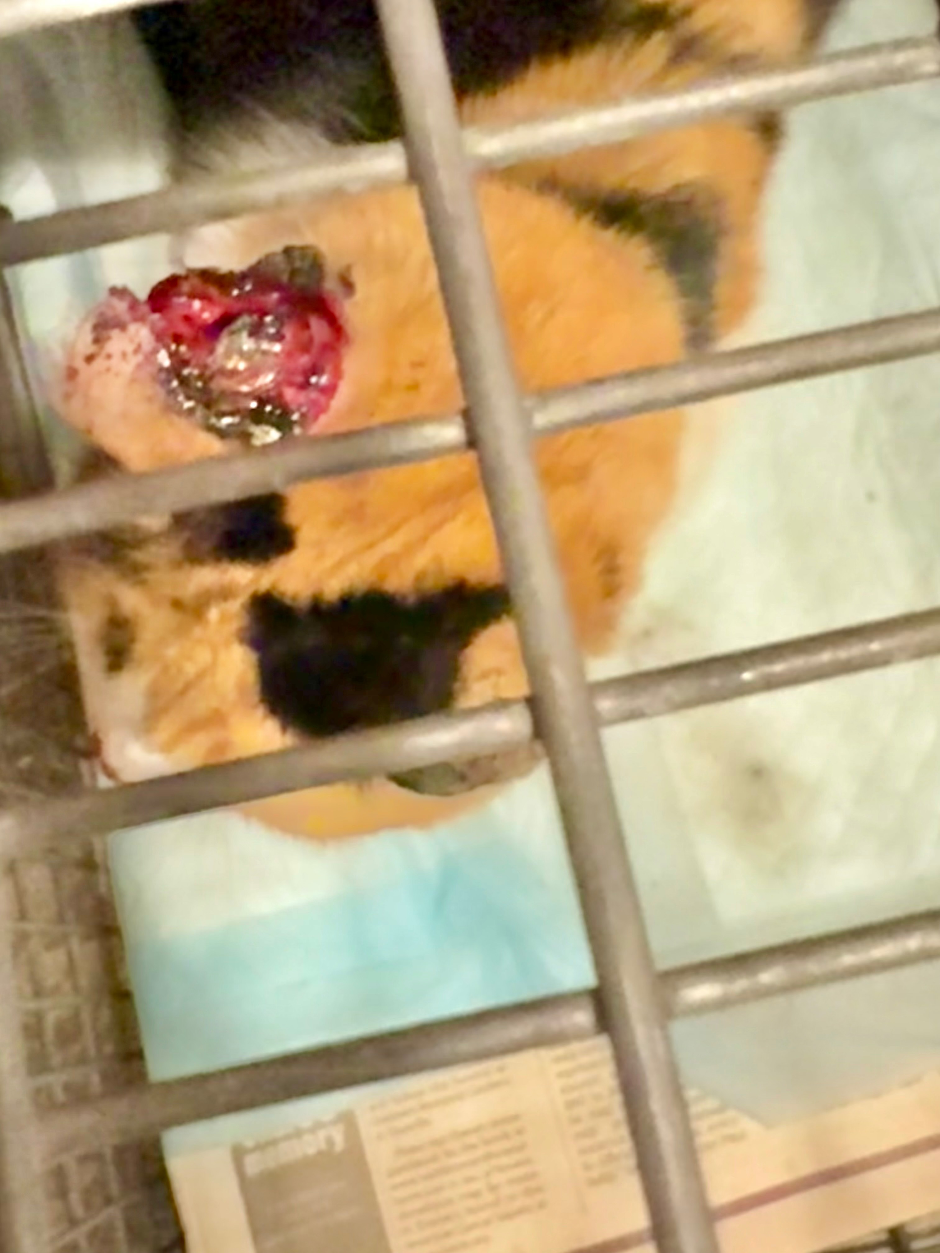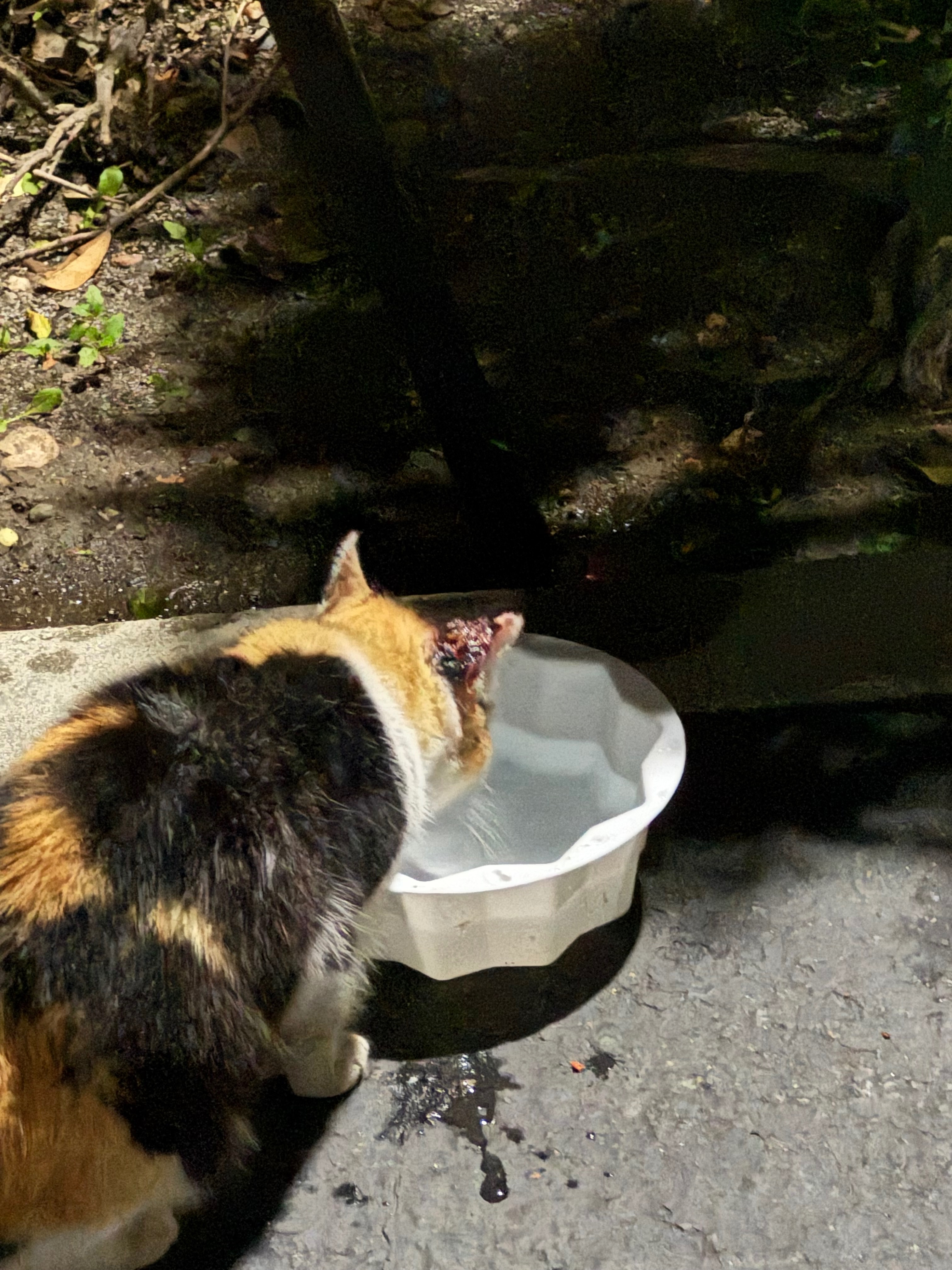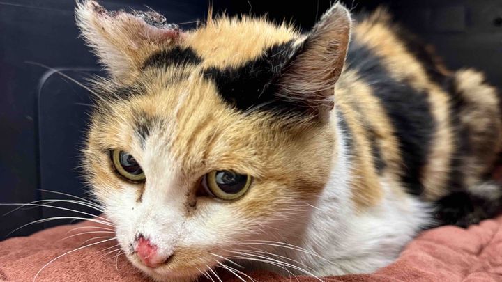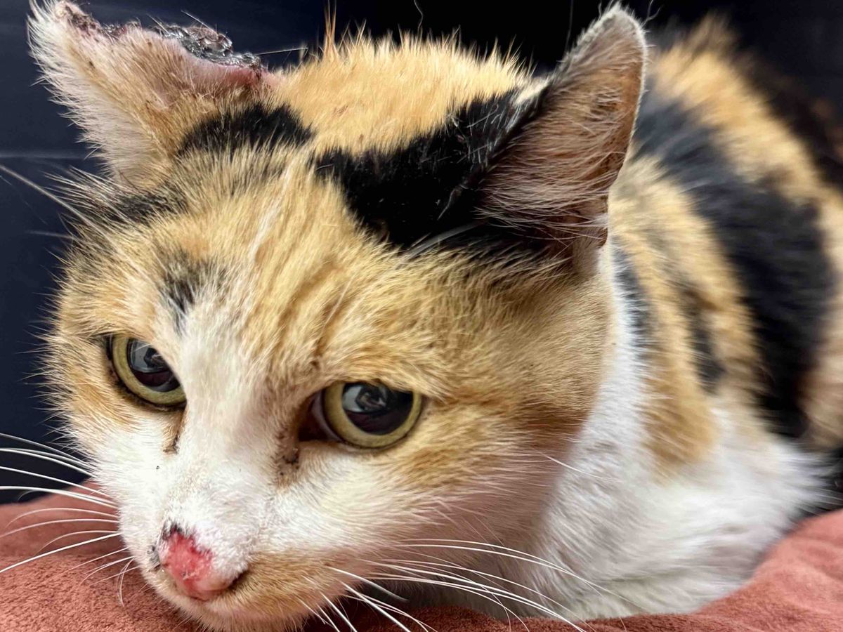 This is Callie, our calico stray. She was taken in because of the wound on her ear and the vet has diagnosed her with cancer. She’s been taken in by our volunteer-run cat rescue (OC Community Cat) and is in dire need of funds to cover her vet bills.