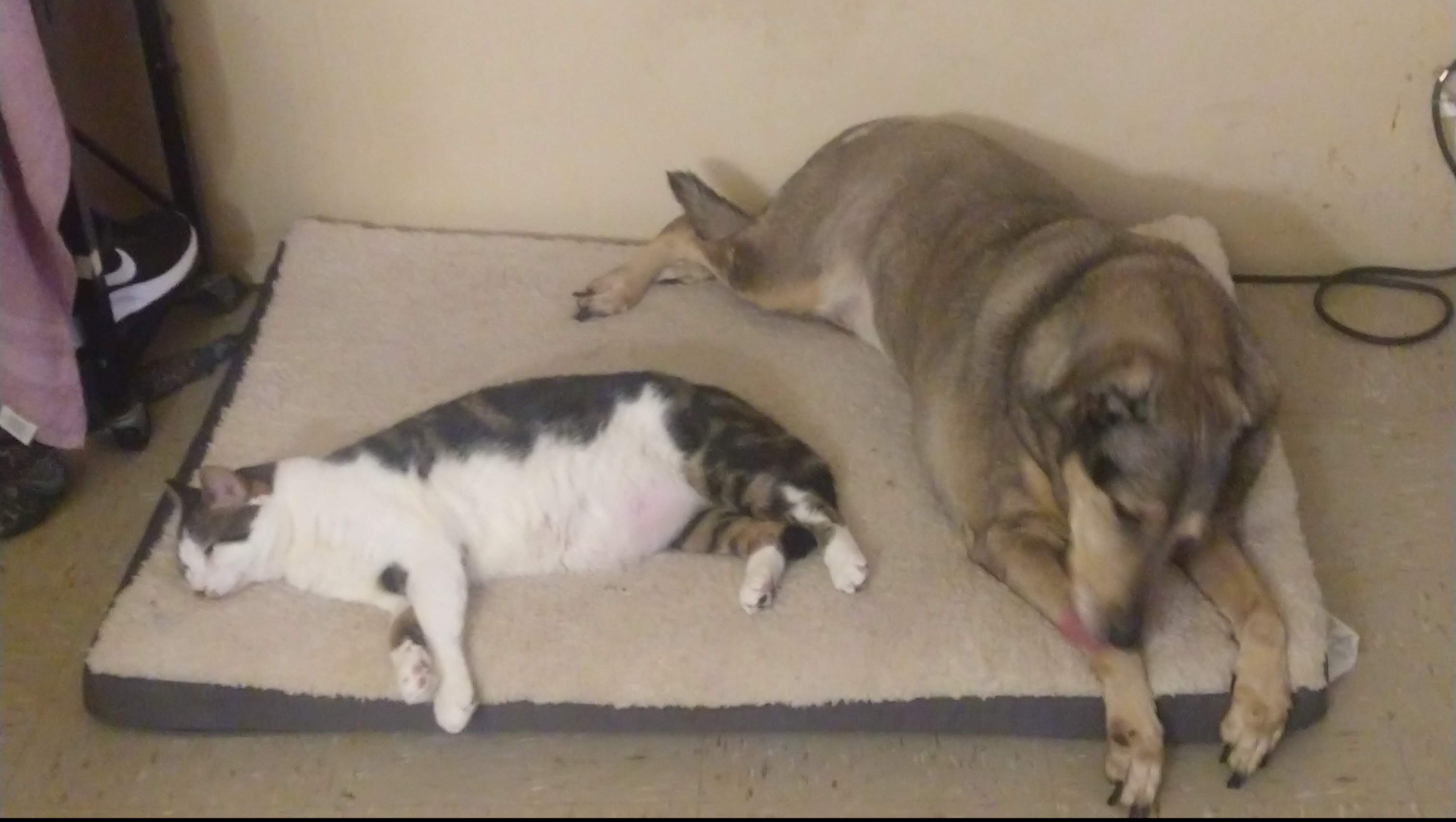 We already had our dog Bella & he was not afraid of her. They will fight & then sleep with each other. They loved each other & he was heartbroken that one night we didn't come home with her because we had to put her to sleep. He missed her & would look for her.