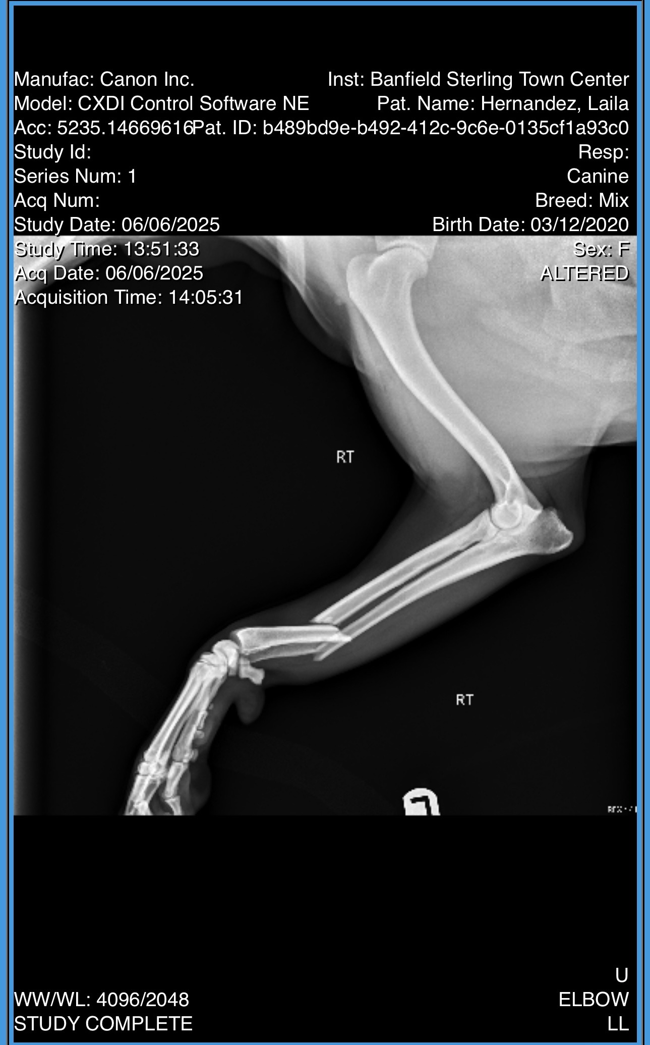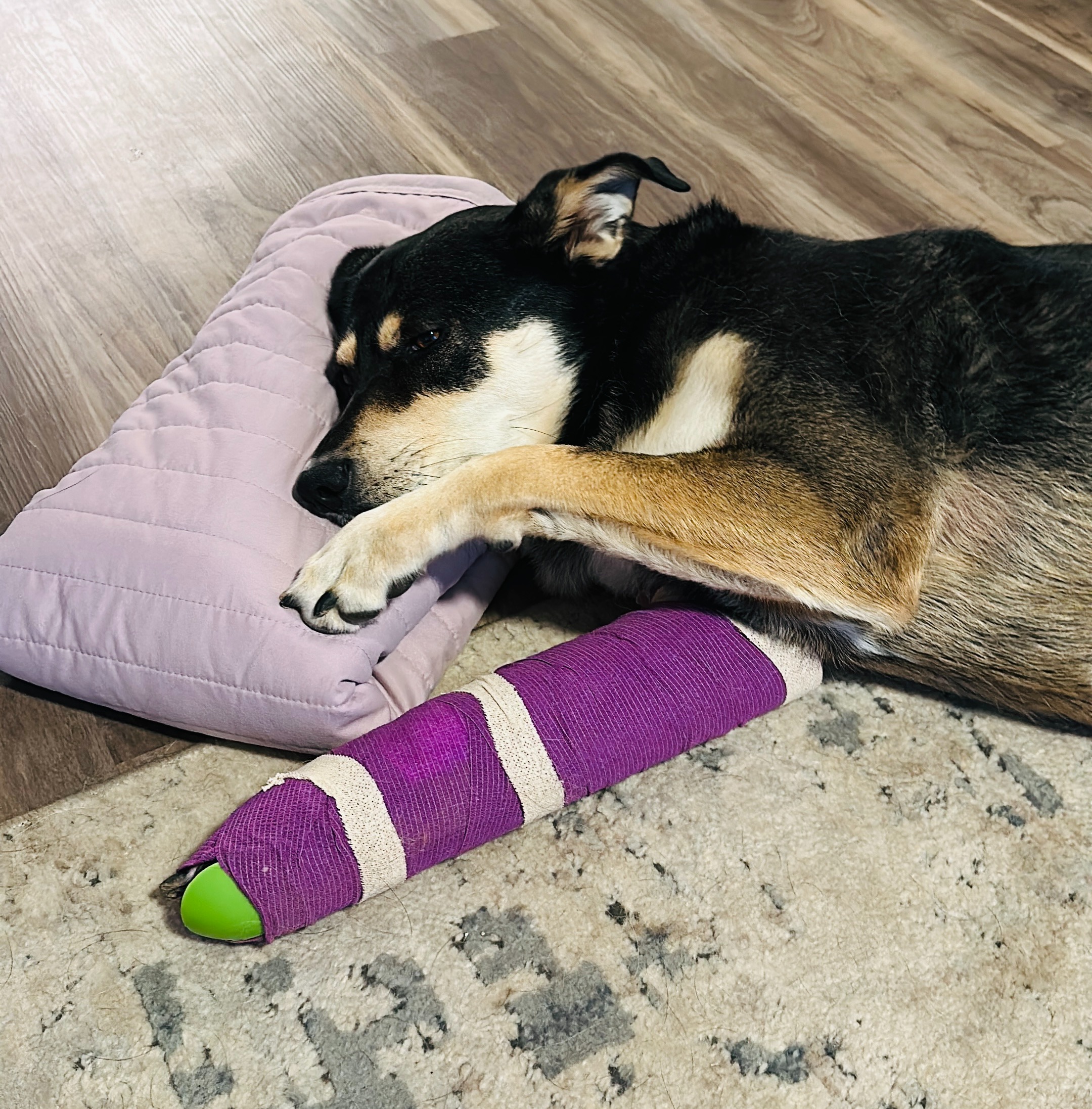 Yesterday, while we were out for a walk, Laila’s playful spirit got the best of her. Trying to chase a squirrel, she collided with a metal pole, breaking her right front leg in two places. The pain and fear in her eyes were heartbreaking. The vet says she needs urgent orthopedic surgery within a week to have the best chance at a full recovery. Right now, she’s on pain medication and immobilized, but that’s only a temporary fix. Without this surgery, her future is uncertain.