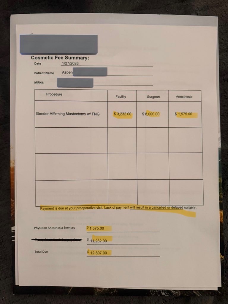 My name is Faron, I'm fundraising on behalf of my partner Aspen. Aspen is a 2-Spirit indigenous beadwork artist. Aspen needs a double mastectomy for both gender affirming and MEDICAL reasons. He was involved in a hit and run accident on his motorcycle a few years back, which resulted in multiple broken ribs among several other (untreated) abdominal injuries. Binding with any available method (tape, binder, ect) causes him excruciating pain, and not binding is extremely uncomfortable socially. He has also had extremely low oxygen counts on his most recent blood tests, and the doctors say it's an issue caused by the binding. Aspen is also high risk for cancer, and this operation would drastically reduce that risk. Insurance refuses to cover the surgery and is even refusing a peer-to-peer with his surgeon due to the fact that he is transgender. Due to changes by the Trump administration, his insurance is no longer willing to cover it as of the 1st of this year. There is no option for a payment plan or financial assistance and we only have $1,000 available through care credit. Either we pay $12,807 upfront before surgery or he won't get it. He has already fundraised approximately $2,000 himself, which is why this fundraiser is set at a lower value than what the surgery costs. He is not coping well with the prospect of not getting surgery as he will have to continue to live with the excruciating pain his ribs cause him. I cannot express how urgent this surgery is for both his physical and mental well-being. We have 17 days. Please, I'm begging that anyone who sees this helps in whatever way they can, no matter how small. Thank you