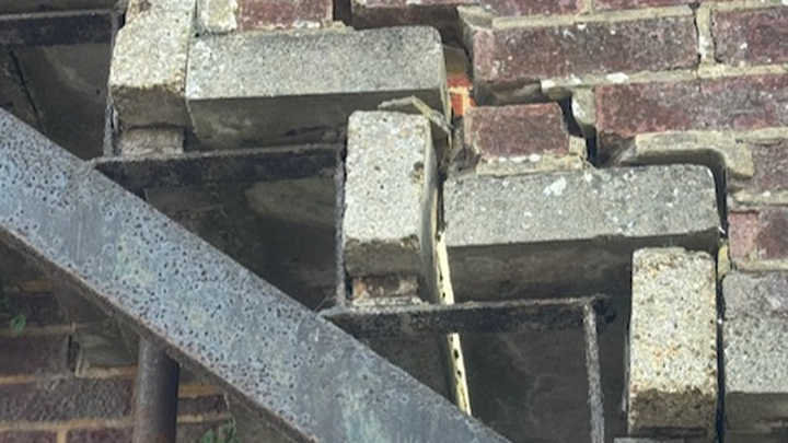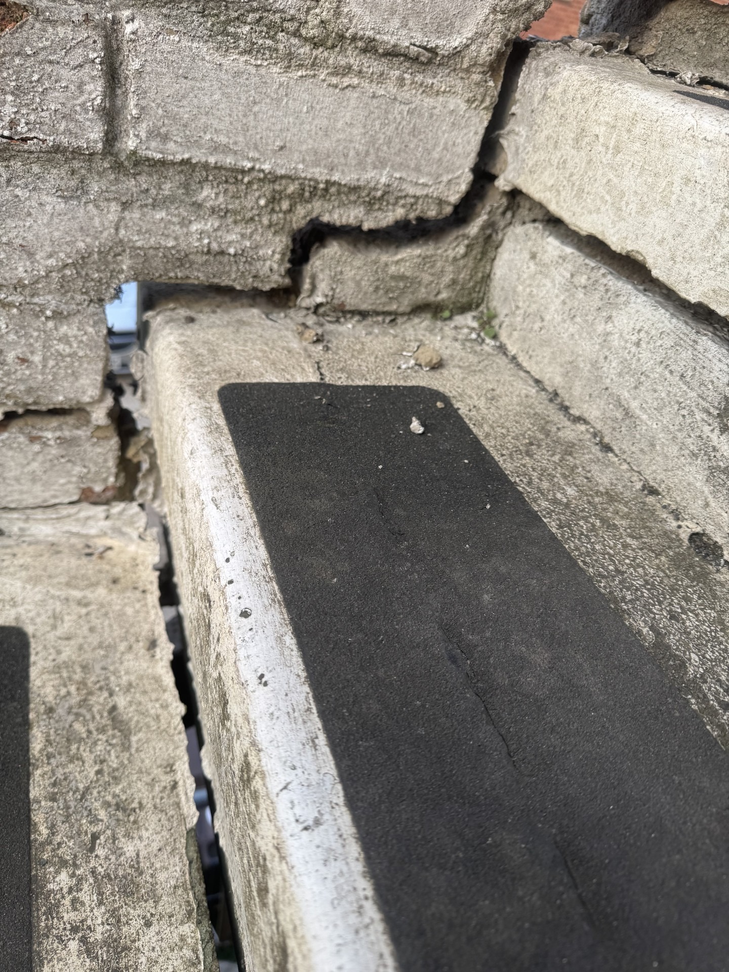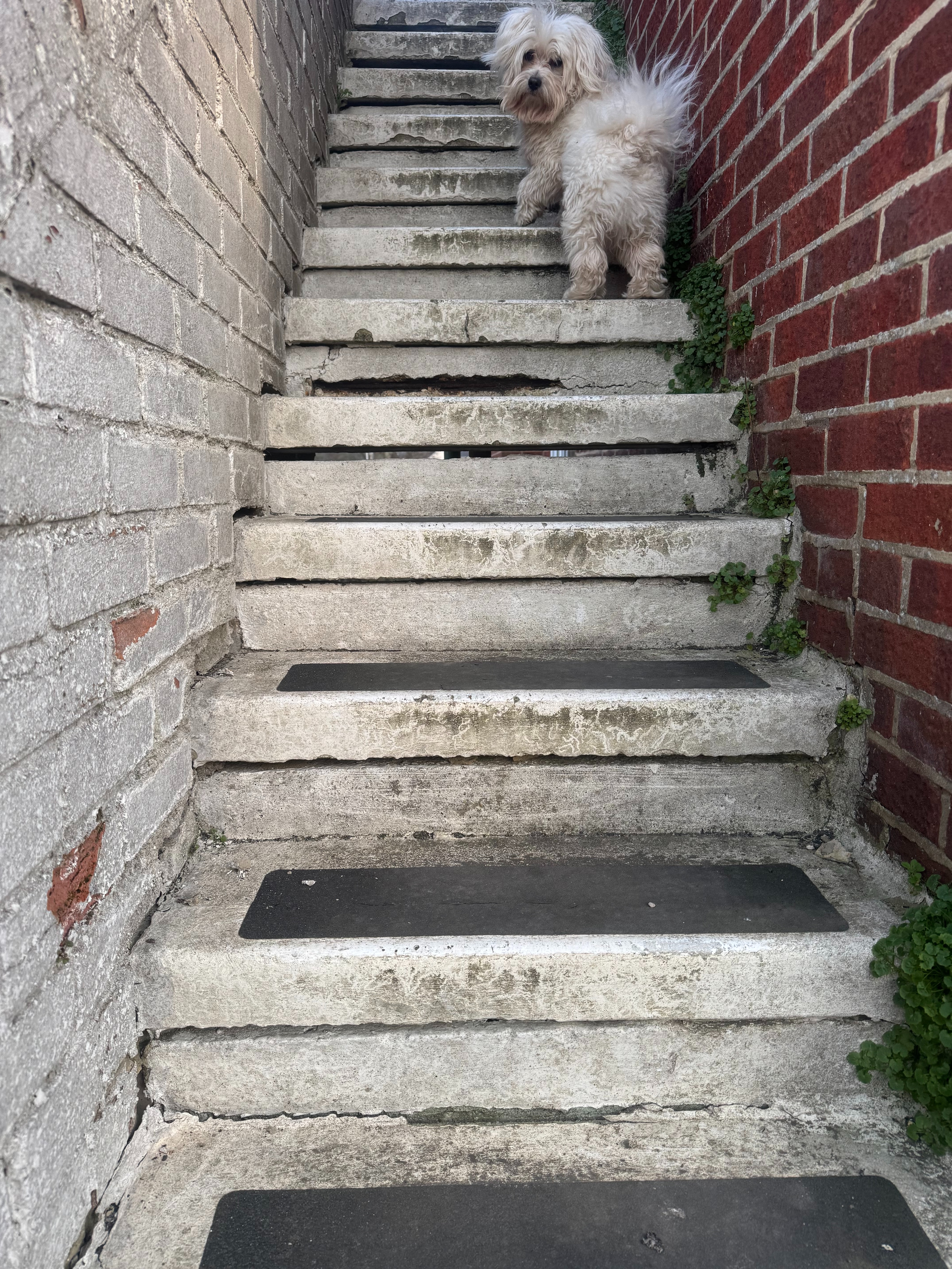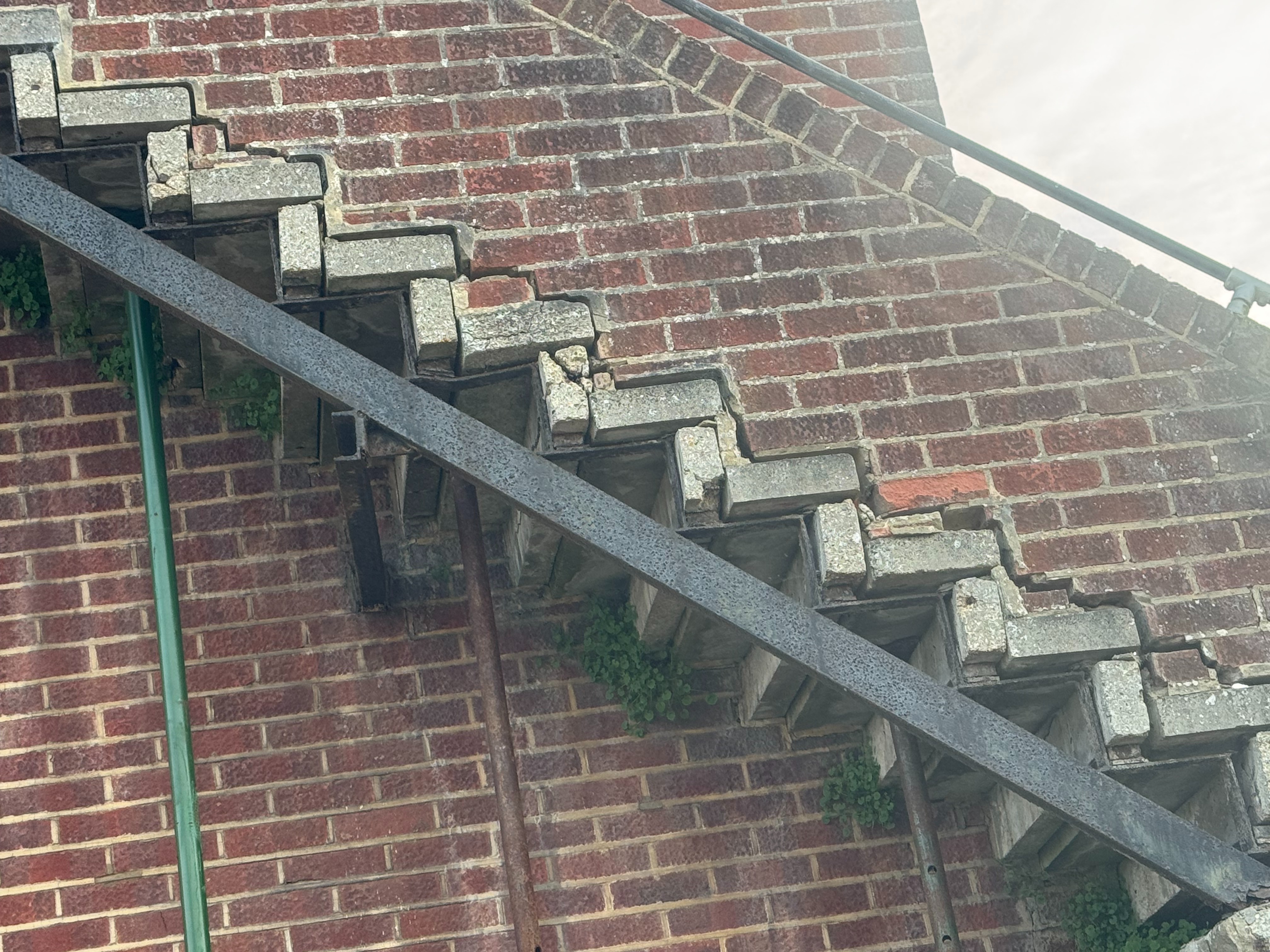 Right now, one stair is dangerously unstable, and before my eyes, the concrete slabs are crumbling, with new gaps appearing and widening.
