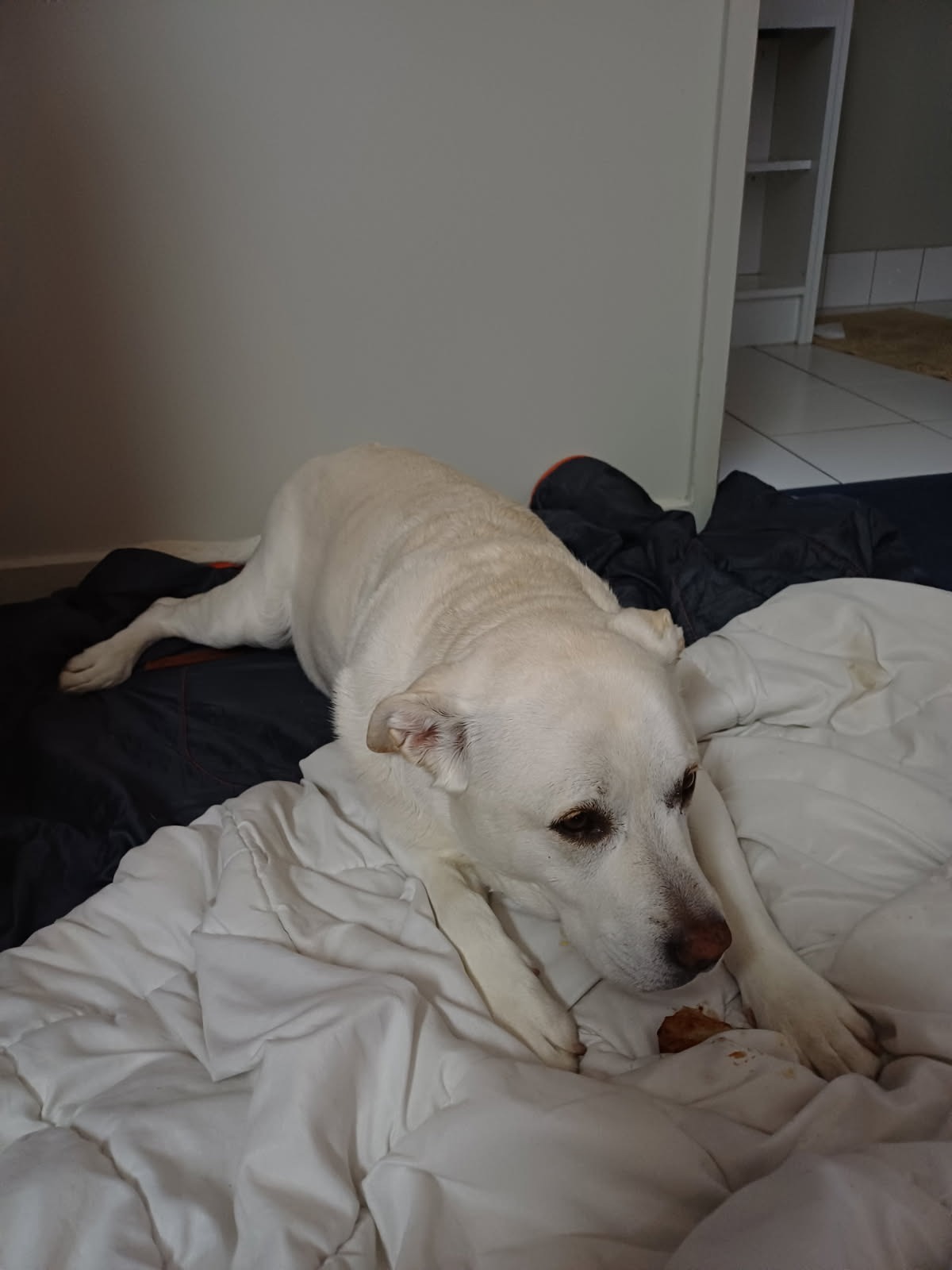 Sheila is a Lab x Staffy with a huge heart. She’s smart, loyal, and full of personality. We’ve faced everything together — rain, cold nights, hunger, loneliness — and no matter how hard things got, Sheila was always there, wagging her tail, reminding me that we had each other.