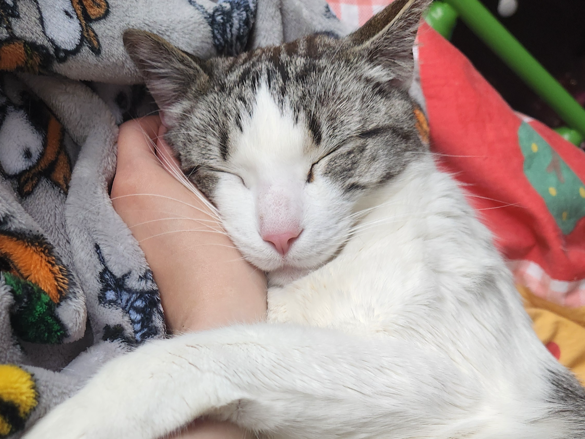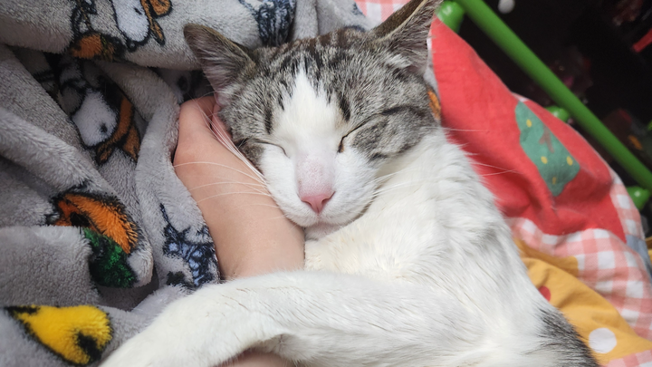 -he sleeps in my arms almost every single night, and has done so his whole life.