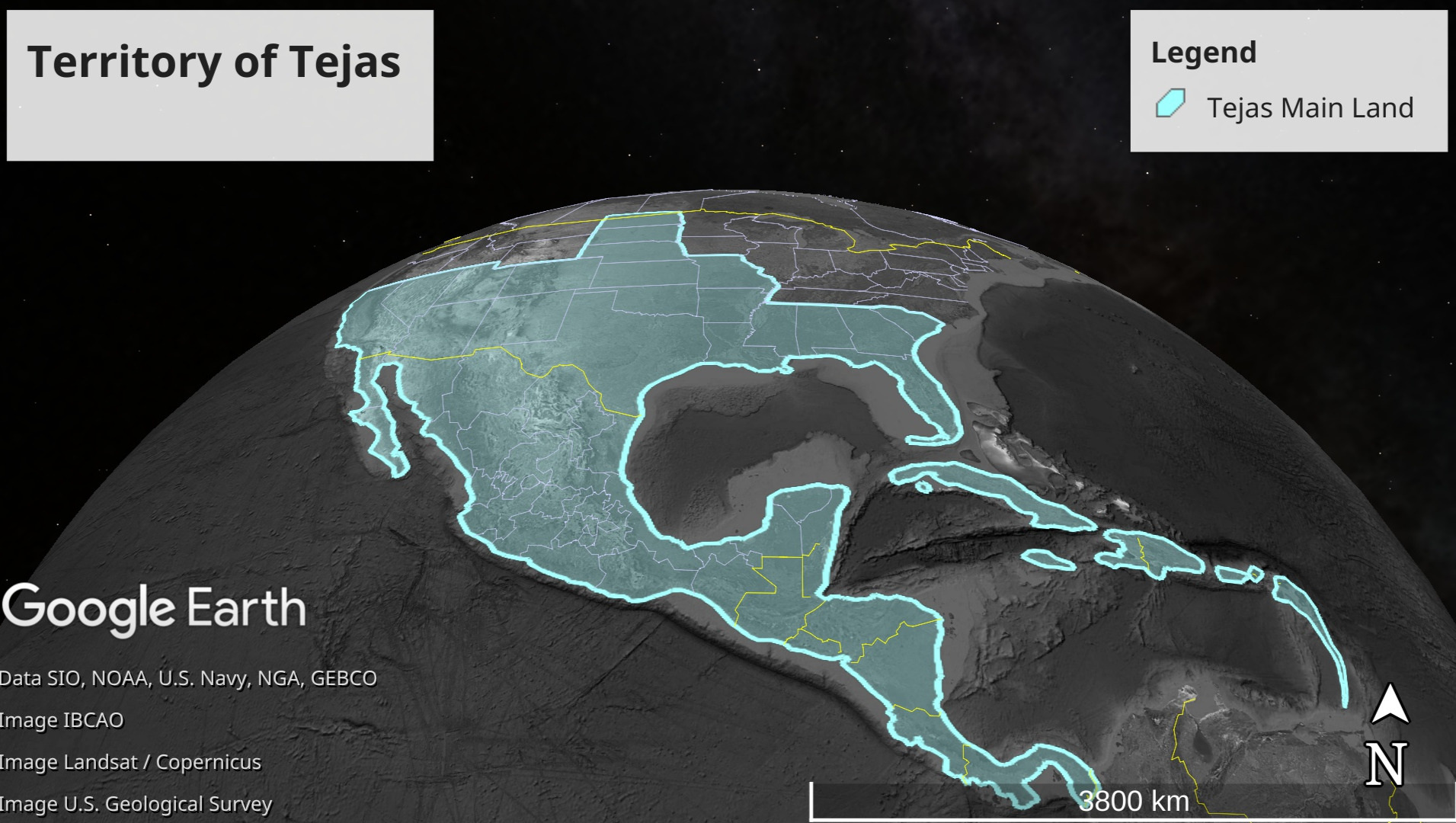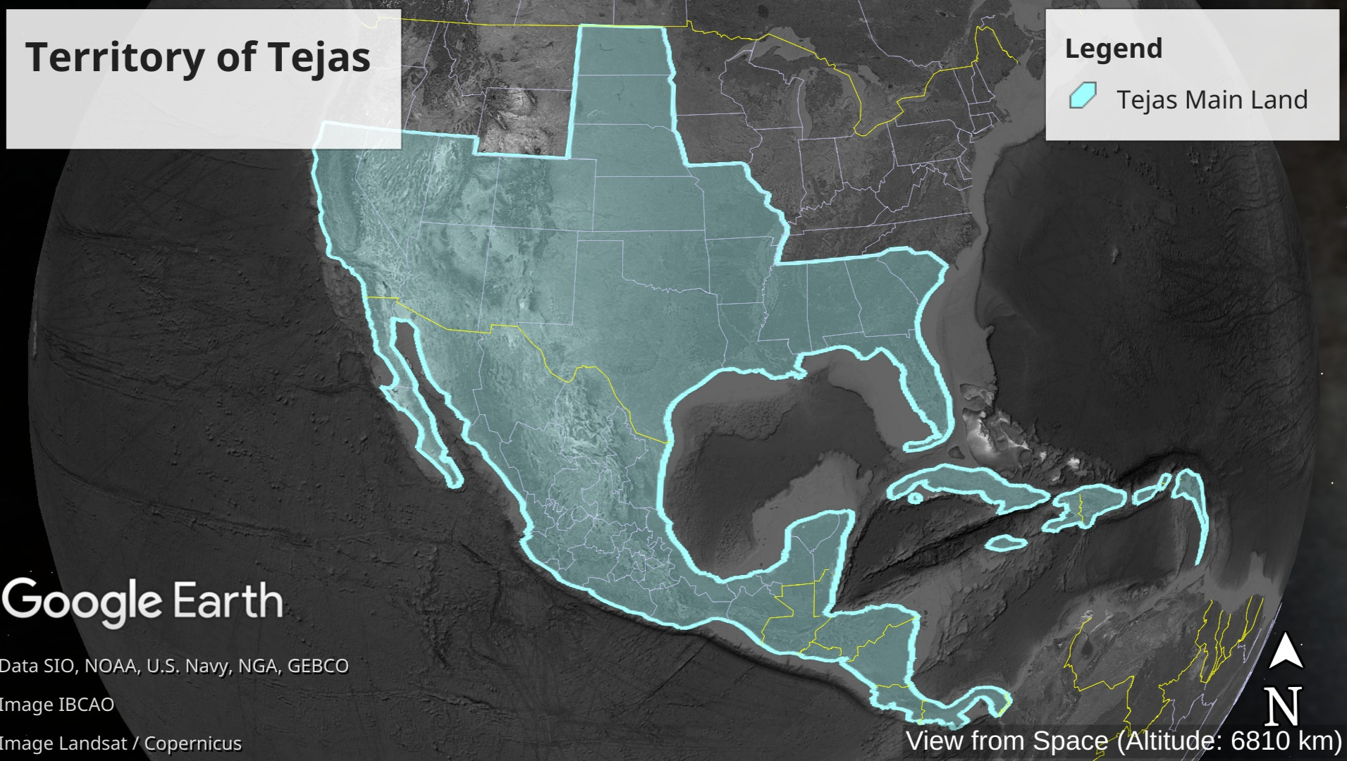 (Territory of Tejas spans regions commonly referred to as North and Central America)