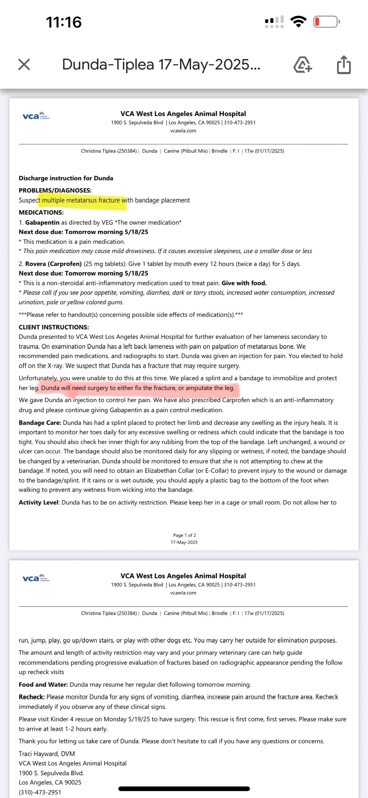 Her back leg was broken in 5 places, and one bone was completely separated from the joint. Surgery was her only hope to keep the leg—and survive.