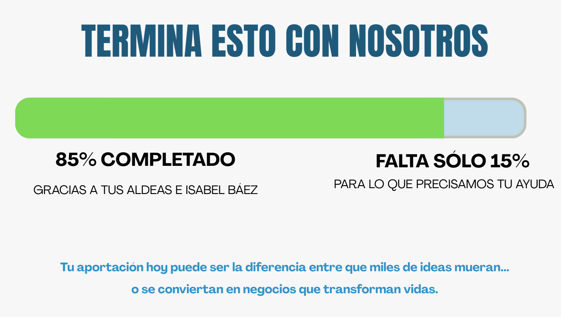 Estamos al 85% de terminar algo histórico. Precisamos de tu ayuda para completar el 15% restante.