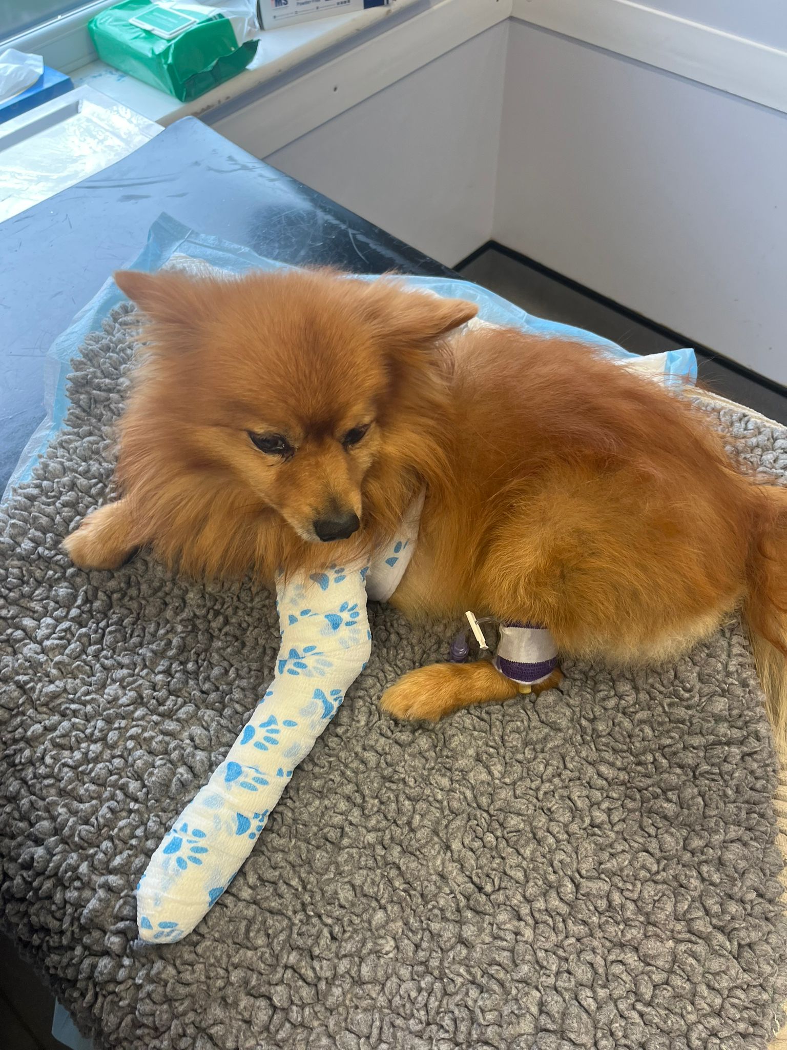 This is the first time we are asking for help because we have never been in such a difficult situation where we urgently need a large amount of money, which our family does not have. On Friday, June 27, 2025 at 19:00, in Poole (UK) on the road Castle Lane West (near the Redbreast North road) our beloved dog, a Pomeranian Spitz, was hit by car. The driver who hit the dog quickly drove away. There are eyewitnesses and photographs of the car, as well as video recordings. We contacted the police and are waiting for an investigation, but Foxy is in bad condition. The front left and left back legs are badly damaged. Now he is in the Vets Now Emergency Ltd in Wimborne and on Monday 30/06/2025 we will take him for surgery to Wessex Veterinary Orthopaedics on 340 Poole Rd, Branksome, Poole BH12 1AW and we were quoted an amount of £6000-£7000 . At the moment, the vet has presented us with a bill for £3500 and this is not the final amount from this vet.