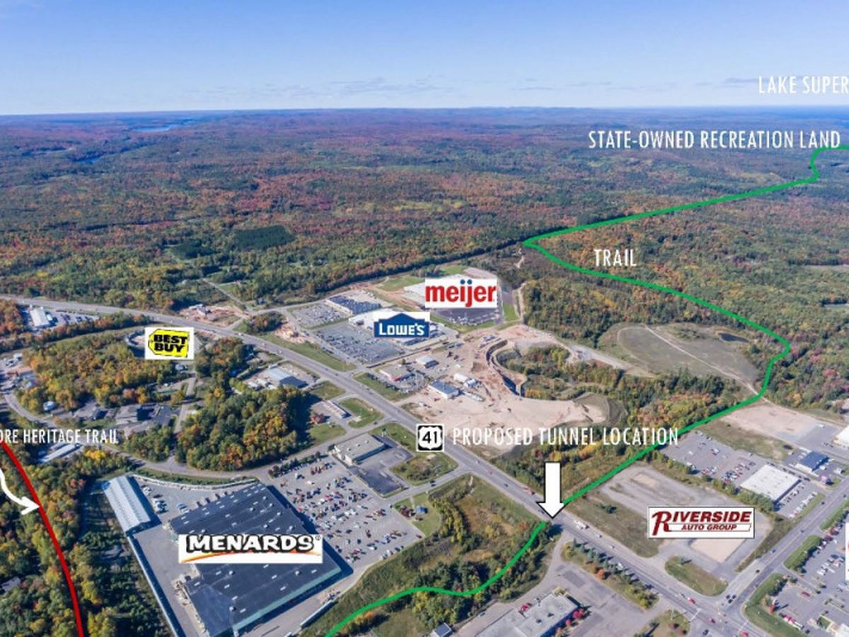 If successful, a tunnel under the US-41 corridor will be constructed just east of the Marquette Menards store in 2019. Connecting trails be will installed from the Iron Ore Heritage Trail to the tunnel; and from the tunnel other existing trail netowrks, in phases. The underpass will also provide safer access to our growing shopping and entertainment district.