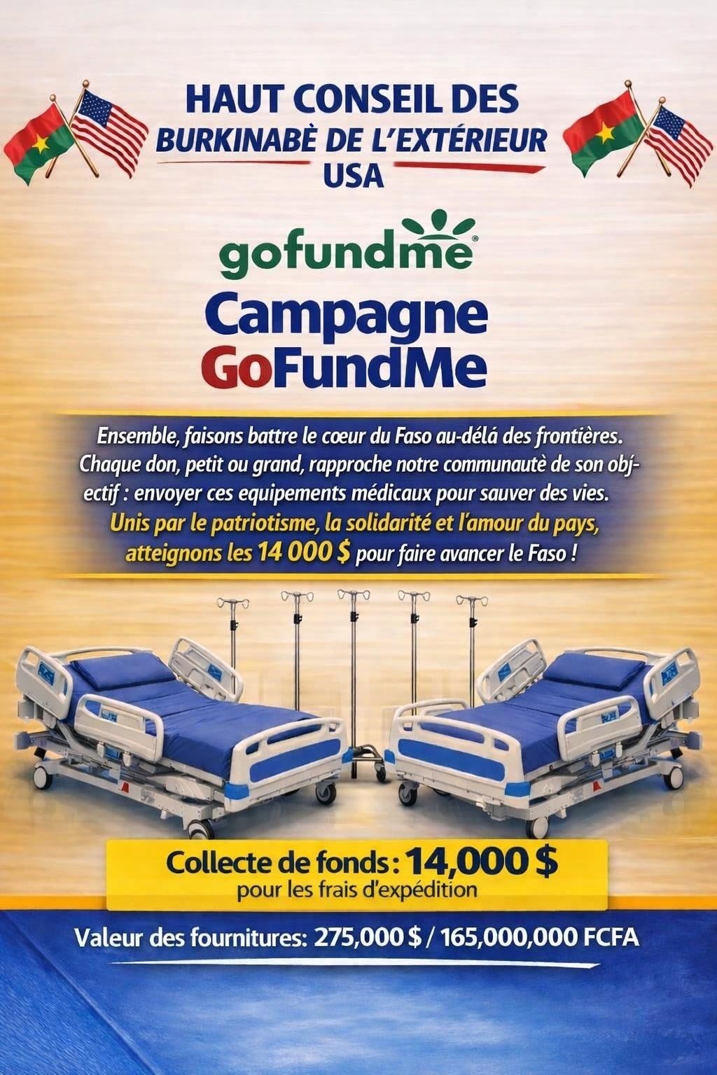Burkinabè de la diaspora américaine, saisissez cette aubaine et faites parler votre coeur en contribuant à l'envoi de ce matériel, d'une valeur de $275,000 soit environ 165 million de FCFA, à bon port.