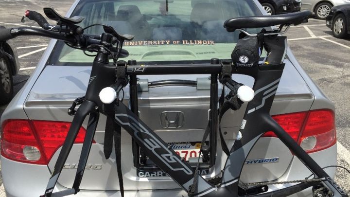 A few weeks ago, as soon as I started feeling good having recovered from my previous injuries and in the middle of Ironman training, I decided to take the bike out and conquer some mental barriers keeping me from riding outdoors. I had strapped my bike to the rack before. I had taken it out across state lines and further than I was taking it than I was planning on driving on May 2. However, as soon as I passed the O'Hare exit on I-90, I looked back and saw my bike fly off my trunk rack.