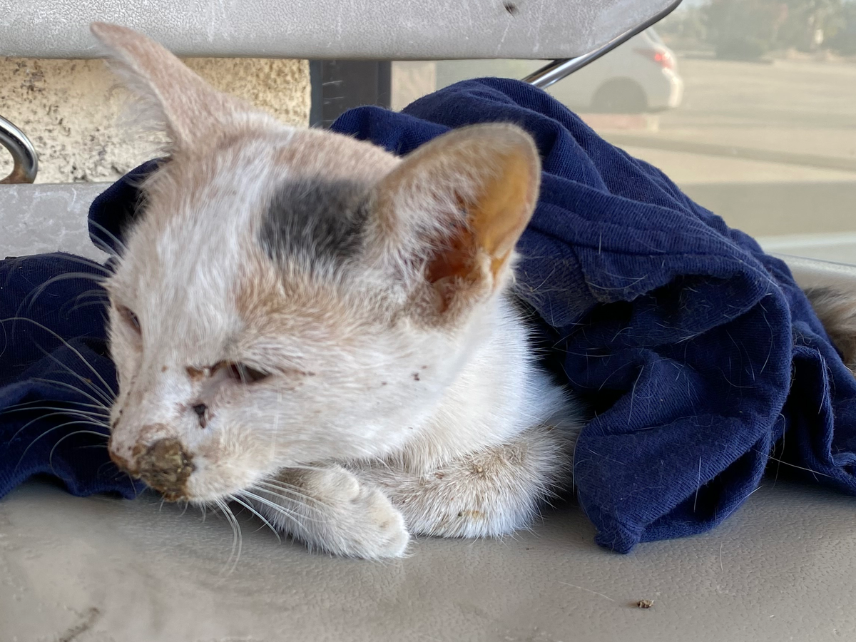 Early Sunday morning, at 7AM, my sister called me in tears. On her way to work, she spotted a tiny kitten lying still in the middle of the road. She pulled over, terrified she was too late. The kitten wasn’t moving, barely breathing, and so malnourished you could see every rib in her fragile body.