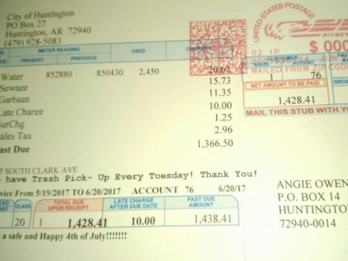 The City of Huntington said I had a water leak. It must have been a big one and invisible since one was never found!! Still making me pay the bill. Which is outrageous. I'm on disability and this bill is as big as my monthly check! My bill is usually $42.23 a month.