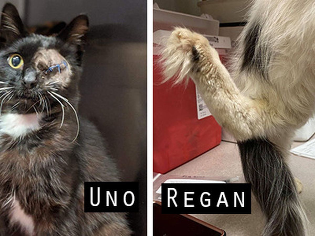 One of the medical cases is Regan. This 1-year-old female cat came into the shelter as a stray. Thin, dirty and stressed, it didn’t take long for us to notice that something wasn’t quite right with her right hind leg, and upon closer inspection, we noticed that she had a leg deformity that made her entire hind leg face backward. After consulting with a veterinarian, it was recommended that Regan undergoes a leg amputation.