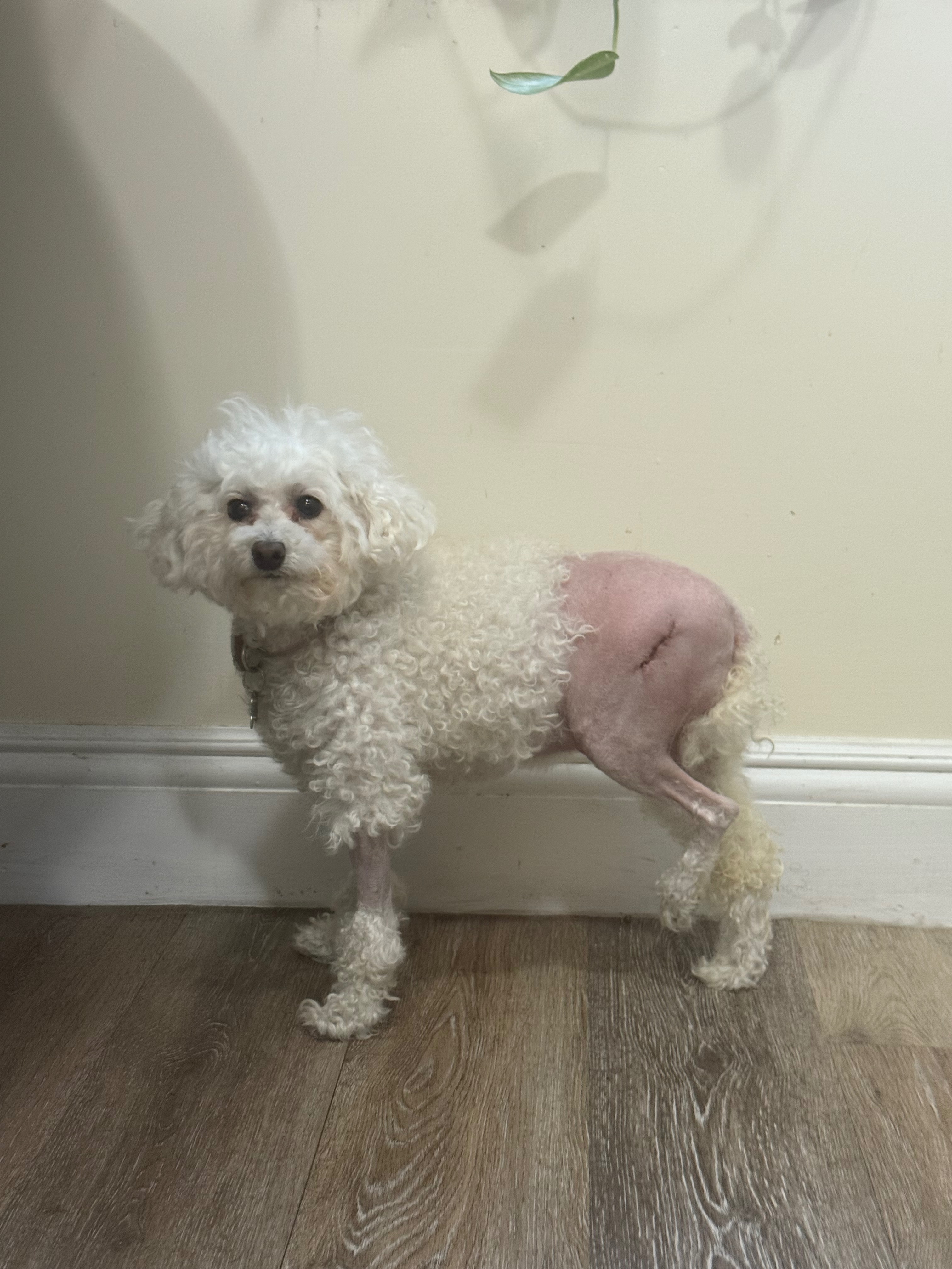 I jumped off from the bed and landed on my hip. I was struggling with pain, and they took me to the vet and found out my hip was dislocated.