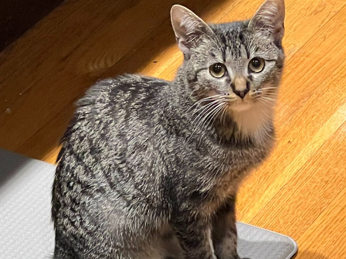 This is Charlotte, who was a member of our 'Royal' litter of Charles, Archie, Lilibet, George and Louis. She's now a 7 1/2-month-old kitten and she's been struggling with a life-threatening condition that prevents her from receiving all the nourishment from the food she eats. She only weighs 5 lbs., when her normal weight should be 9-12 lbs.