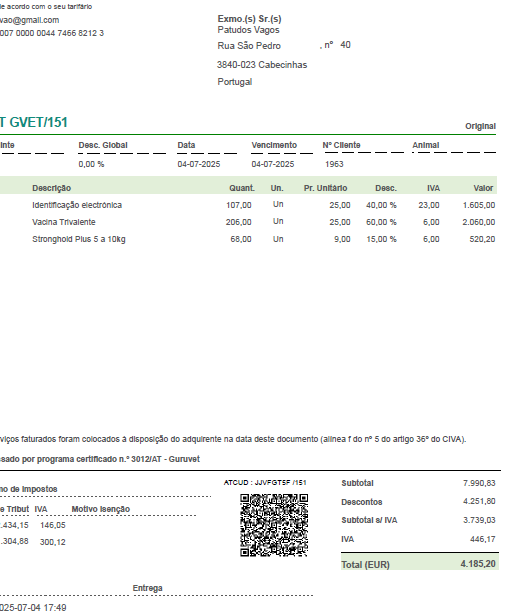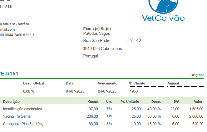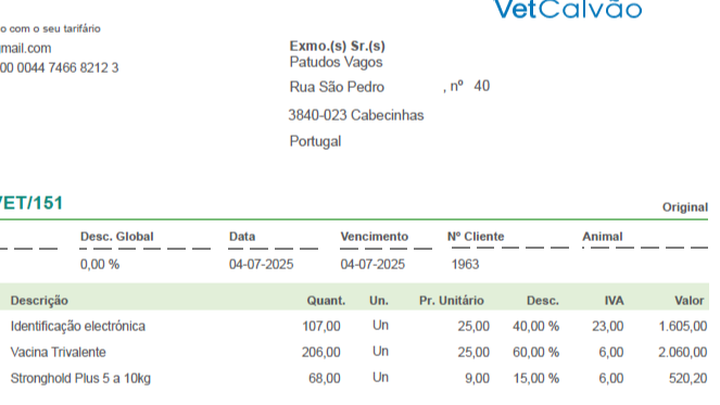 Esta fatura são cuidados obrigatórios que temos de ter com os patudos e não podemos prescindir dos mesmos.