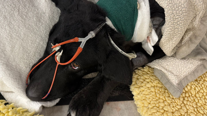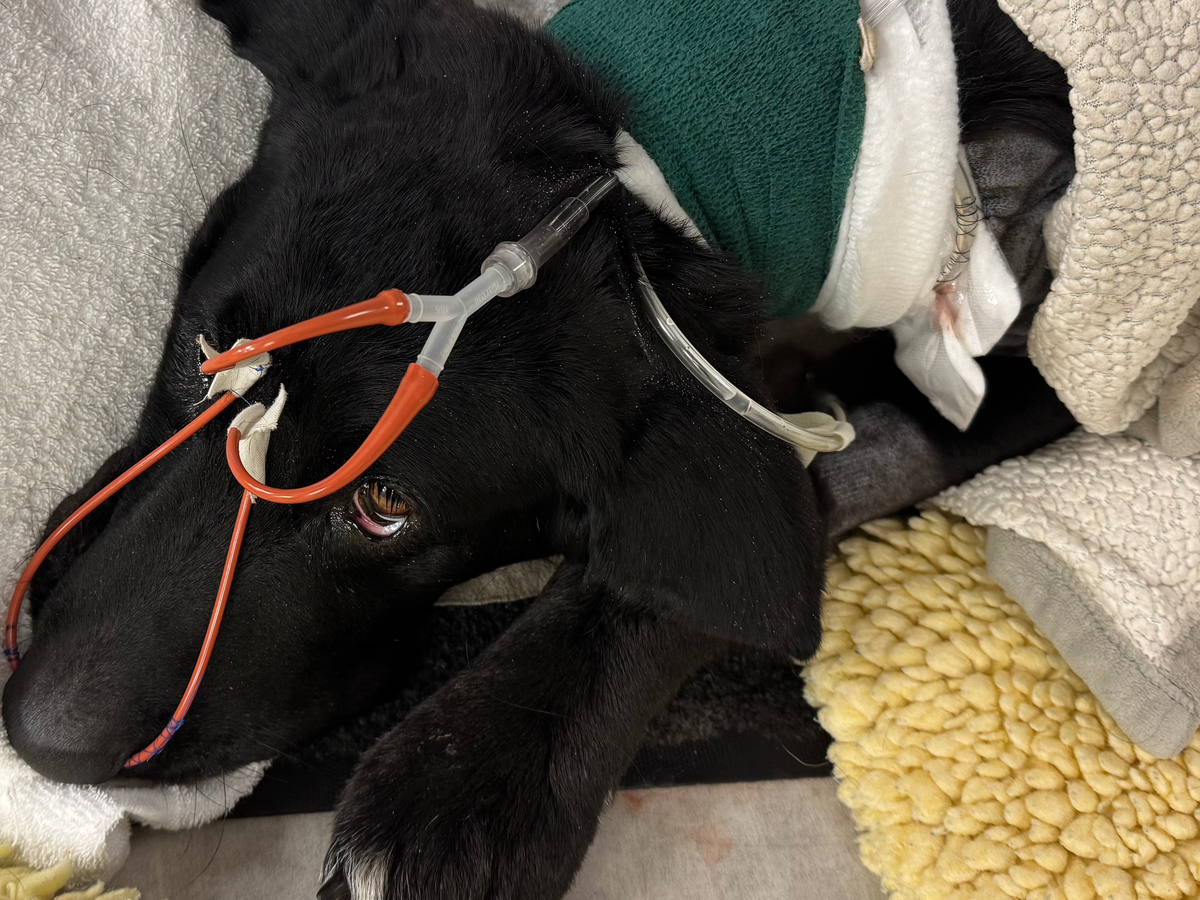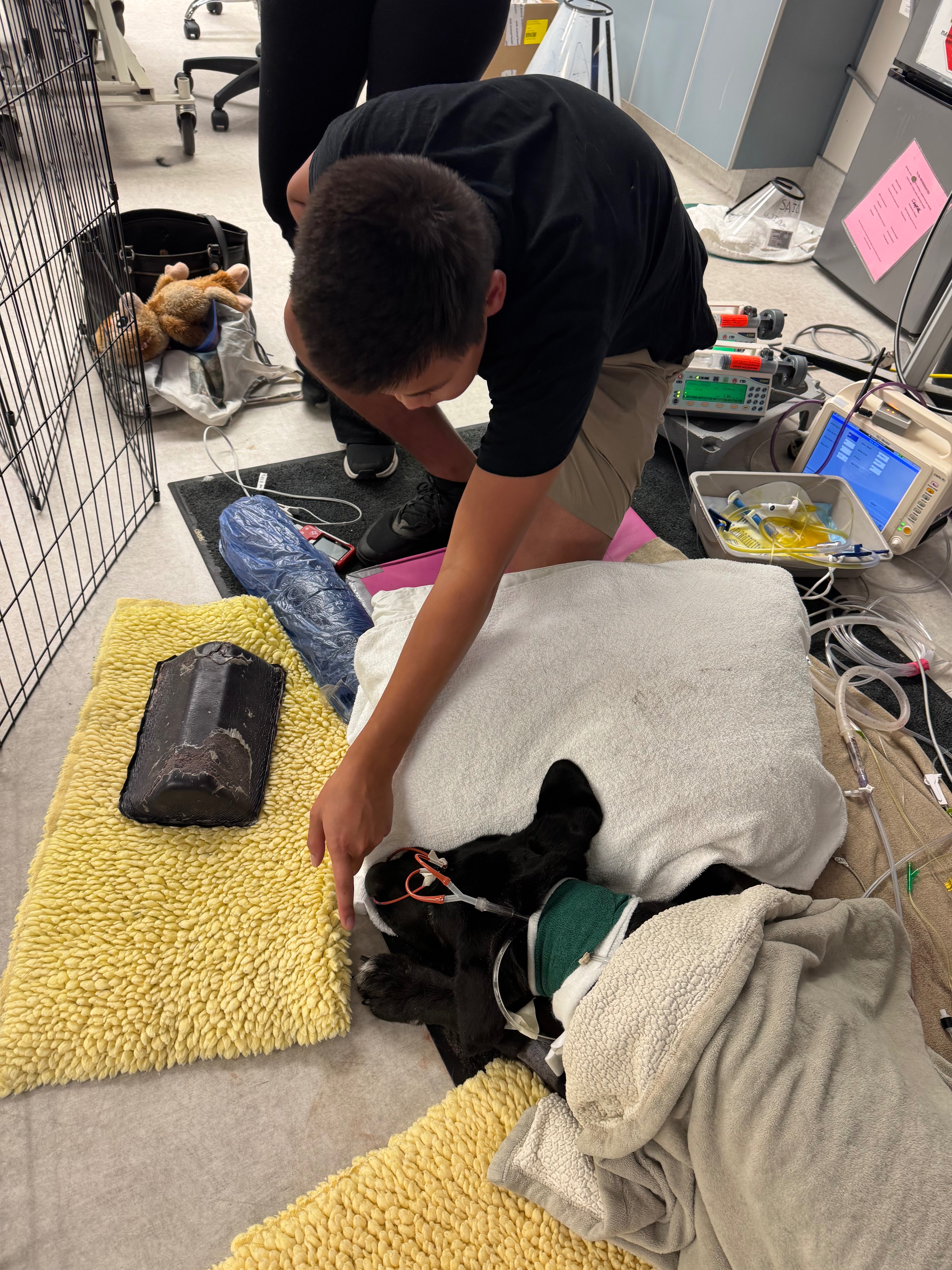 We were advised to bring him to the top vet in our area, WSU veterinary clinic in Pullman, where he is now. There, they immediately conducted a surgery to figure out what was going on. When they cut open his chest, they found the worst pyothorax the vet has ever seen. They had to remove 3/5 lung lobes, peel his lungs from his chest walls and heart, and hook him up to several machines.