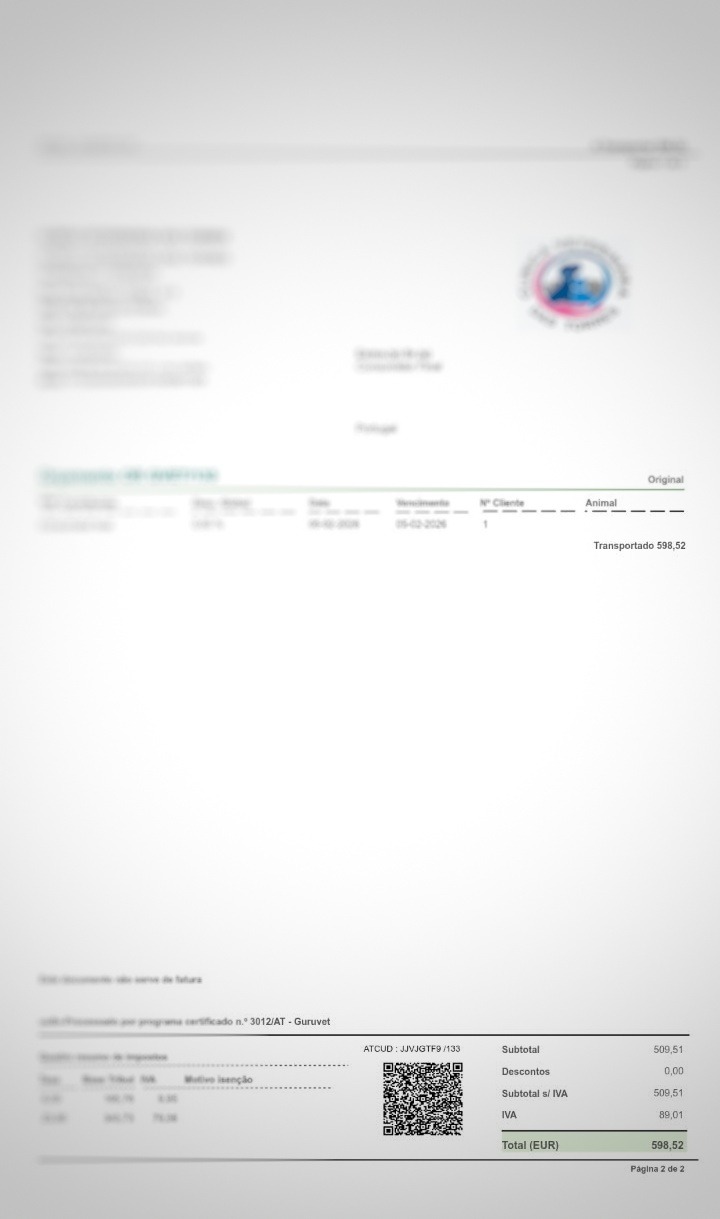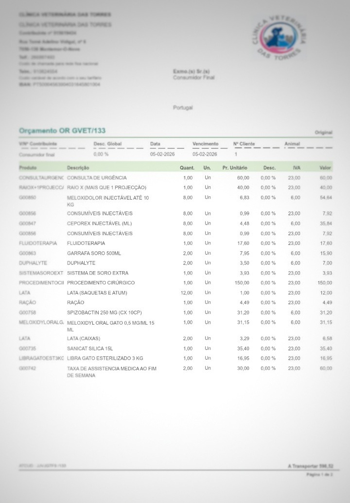 A conta veterinária ascende já a valores próximos dos 600€.