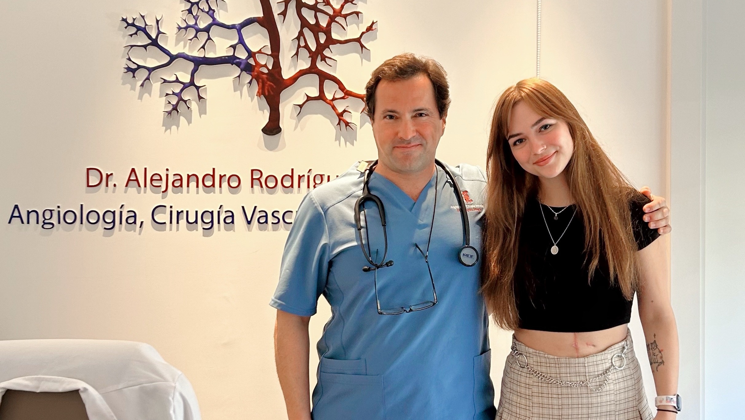 [Sarah with the vascular surgeon in Málaga]