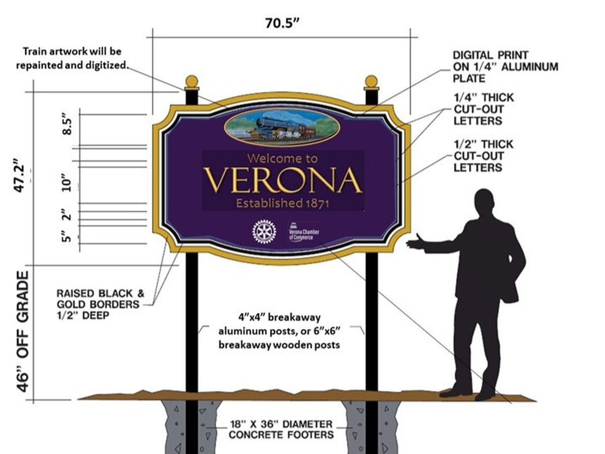 Community Input. The sign design was the result of intensive design work by the sign committee, and two surveys conducted over the last six months. The 72 survey responses that we received, plus input from Verona Borough Council, helped us decide on the final sign design. Key findings from the surveys were: