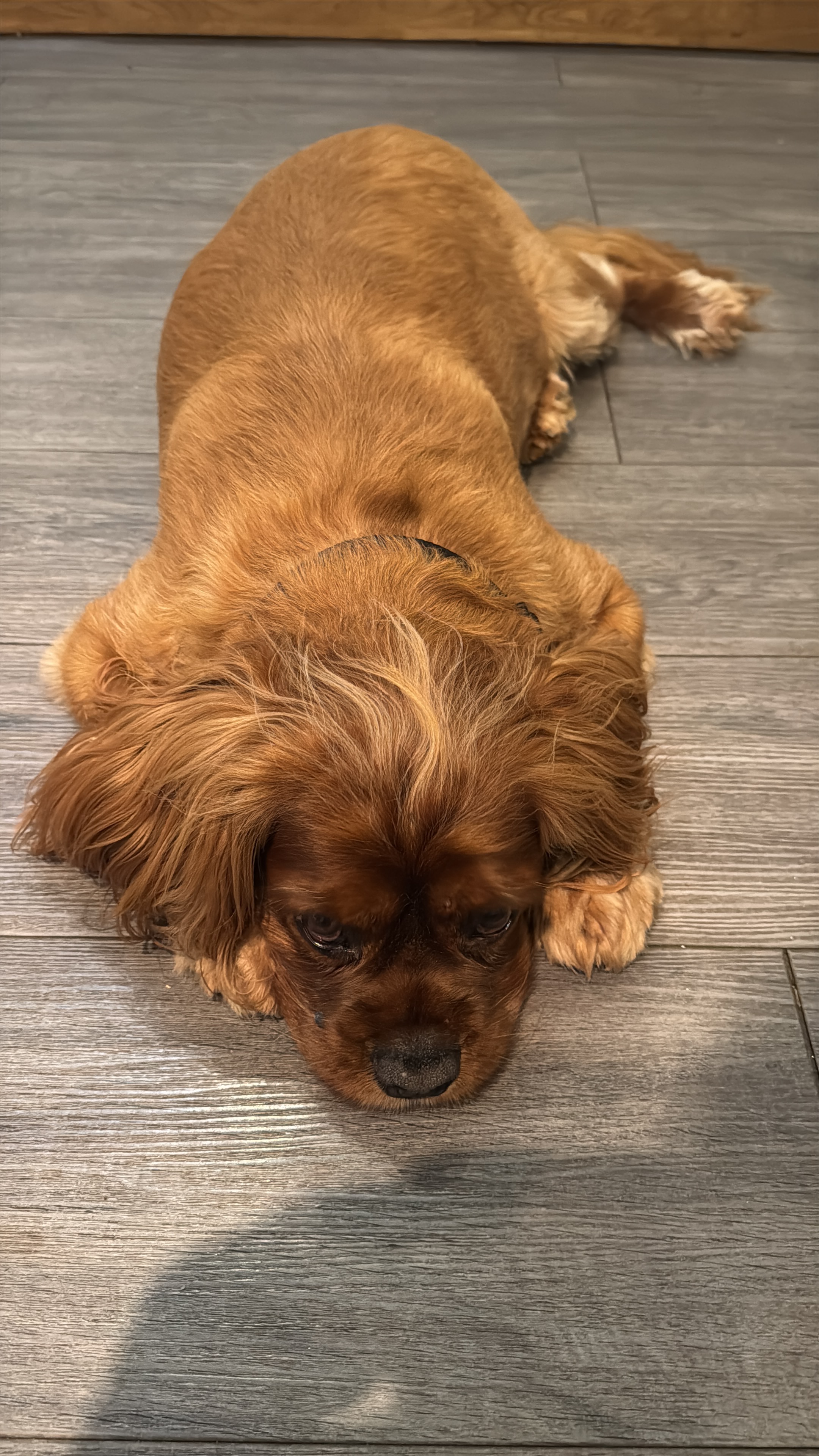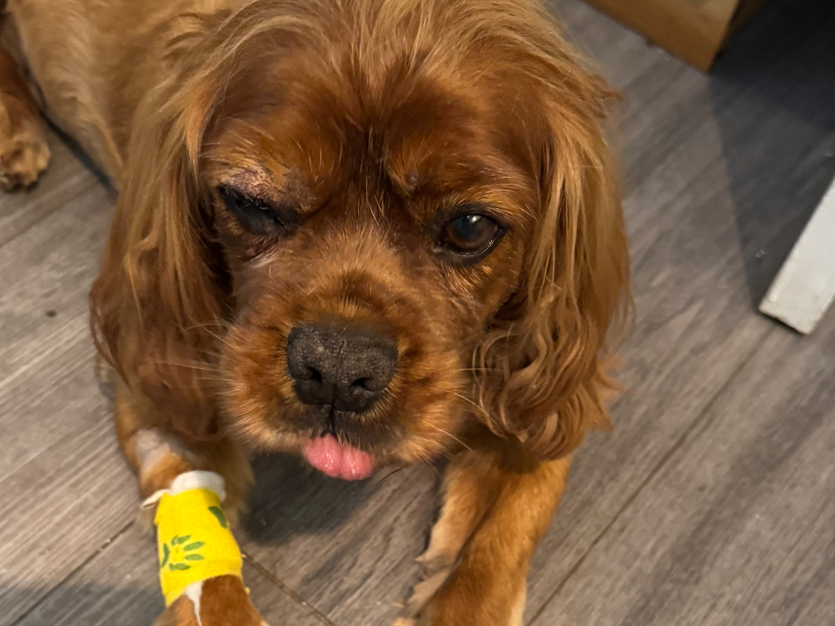 Hello. My name is Pete. Charlie’s owner died just over a year ago and although we had a dog already we were asked to take Charlie on. We gradually got to know each other over the past year and for once in Charlie’s life we trusted him to have walks without his lead. He was living his best life when for no reason both his back legs collapsed, meaning he needs carrying most places and although he doesn’t show it, he must be in pain which is difficult to watch.