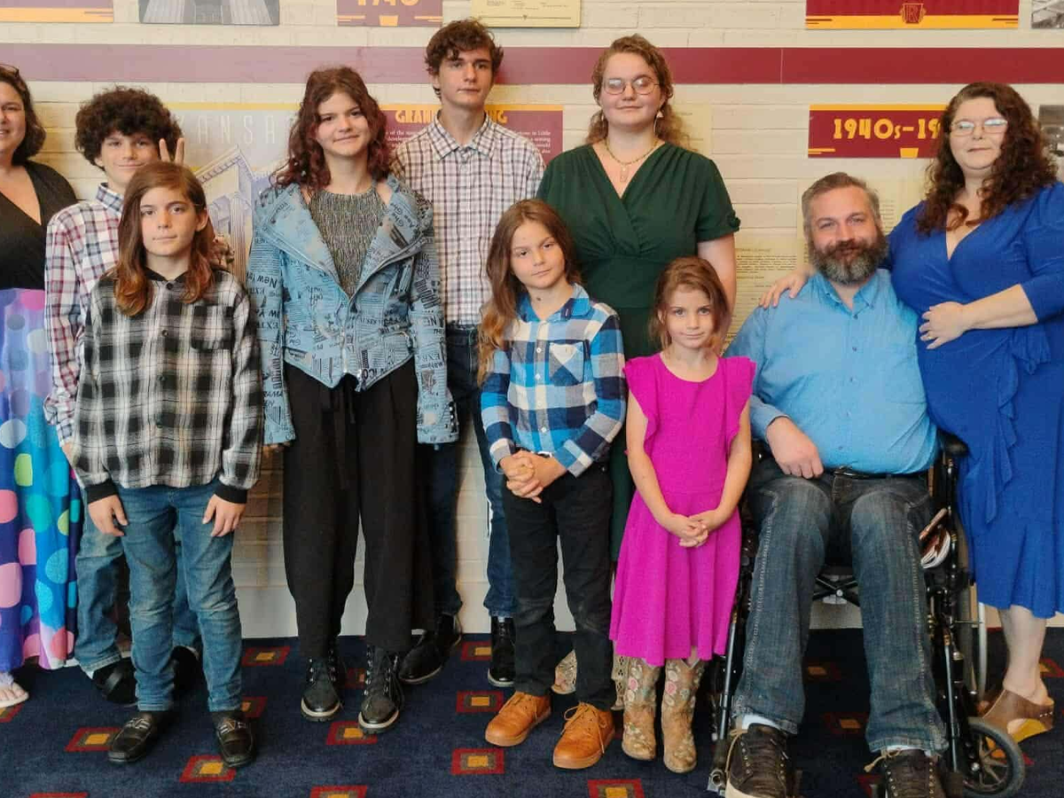 This family includes seven children at home and two children currently in college — all displaced overnight with nothing left but the clothes they were wearing. Their home, belongings, beds, clothing, school supplies — everything was lost.