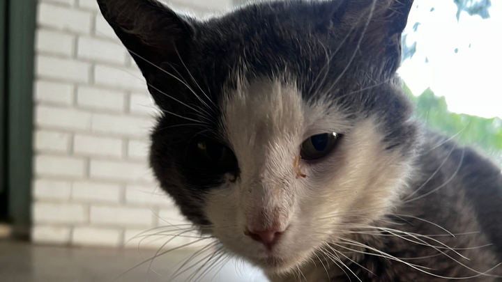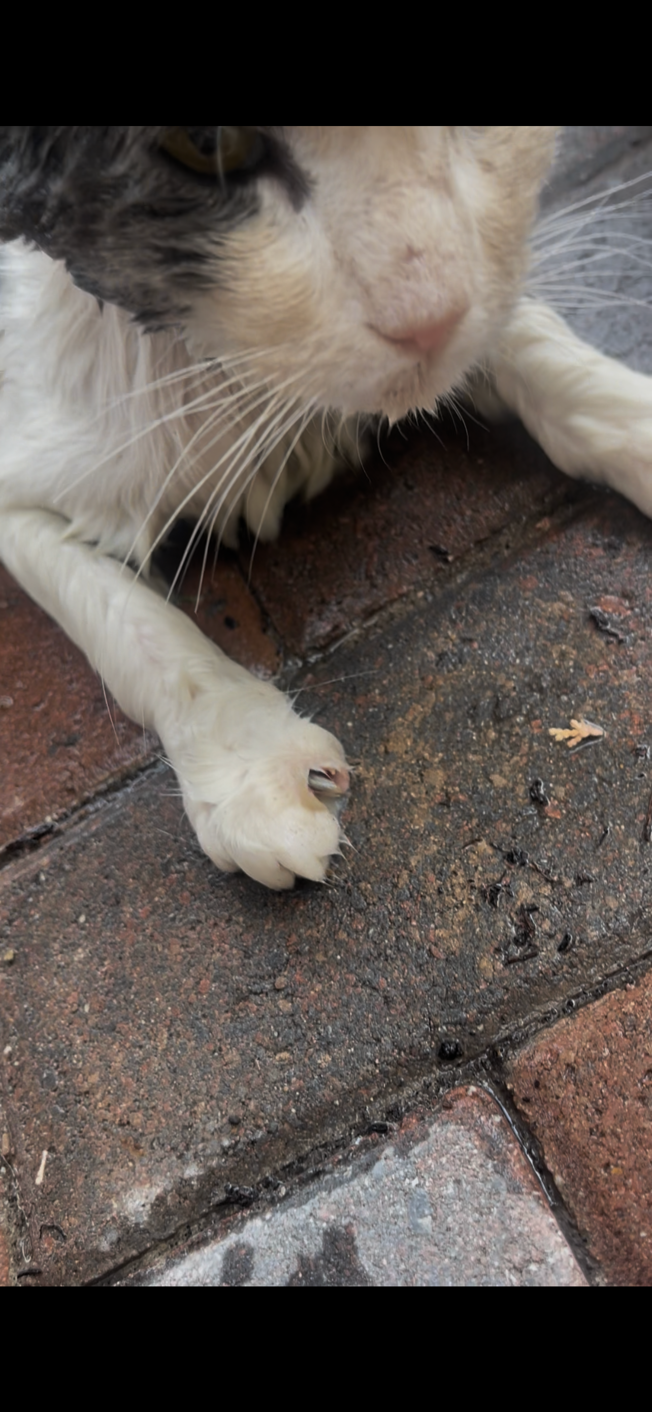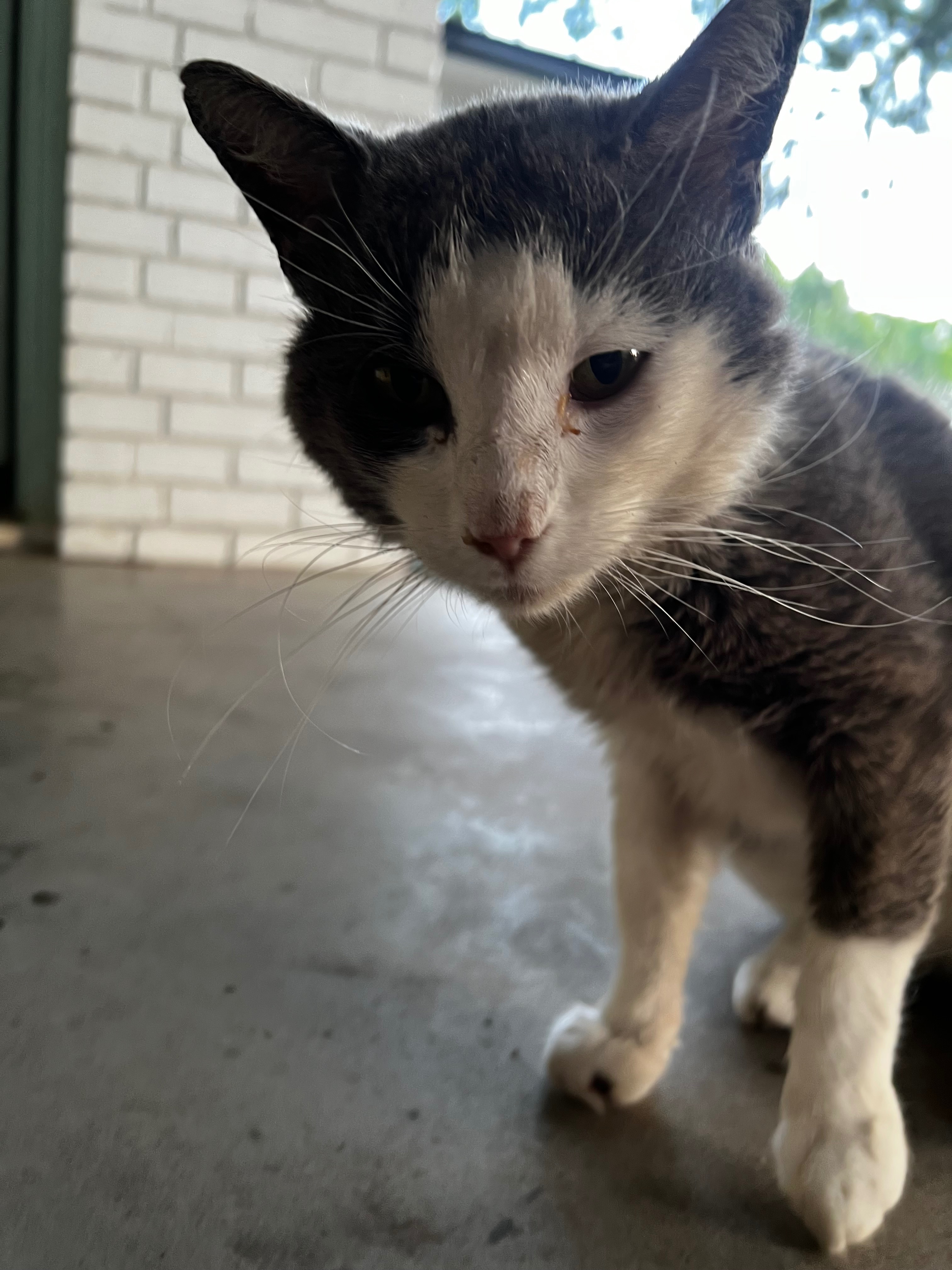 This is Ash. He needs immediate vet attention to treat what seems to be an infection on his nail and severe weight loss.