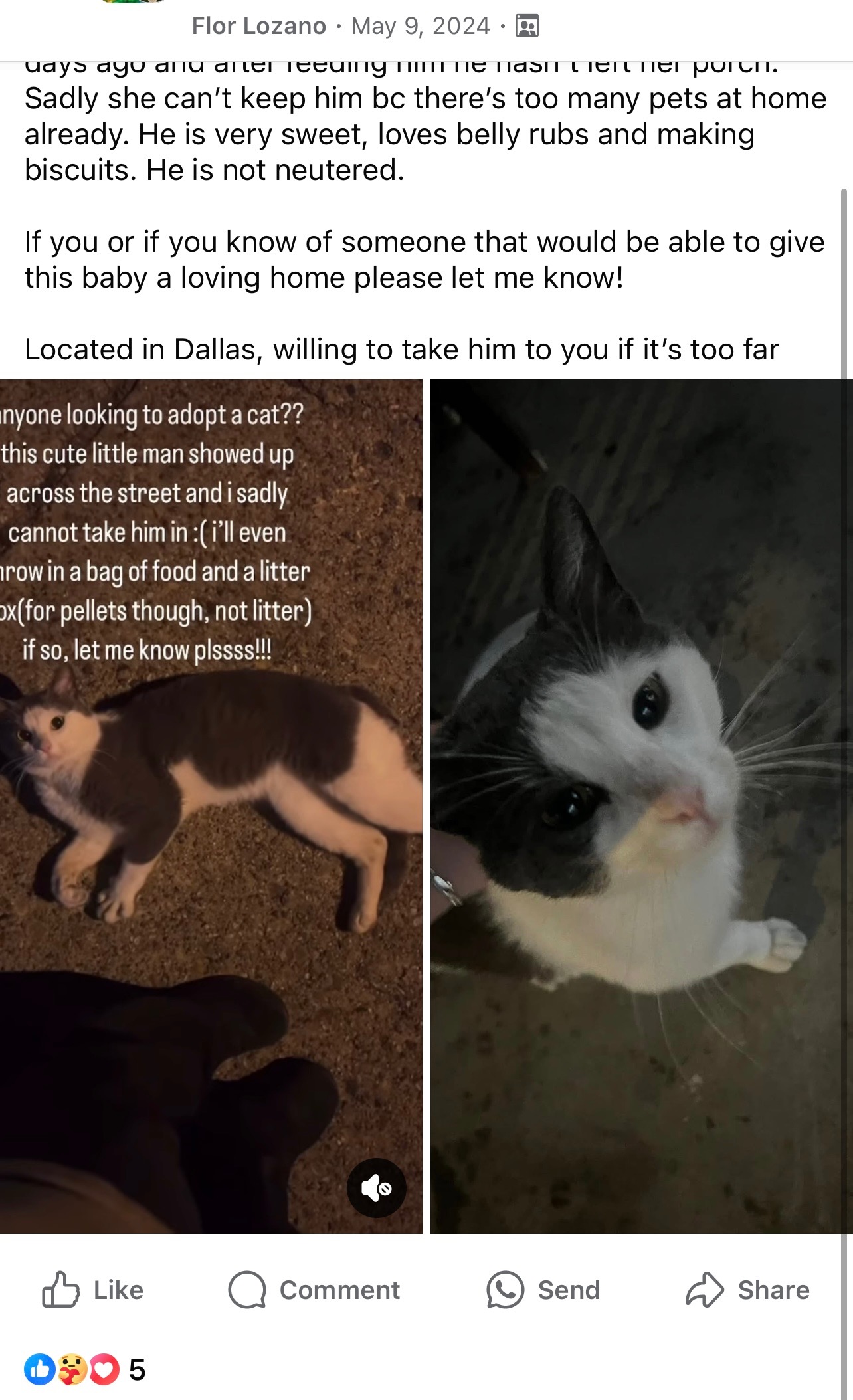 Ash walked up to us on the street about a year ago and never left the neighborhood since then. We posted him on several pages to try to find him a home. He was very sweet and friendly from the very beginning. Unfortunately, none of the posts were a success. Since then, he's been fed anytime he's around (he goes days without stopping by at times). A few weeks ago, one of his nails was bleeding, but everything else appeared fine. Within the past week, he has lost a tremendous amount of weight, he doesn't eat anymore, and lays in the same spot all day. He has no energy at all, and we're afraid that he is slowly dying. We want to get him the care he needs.
