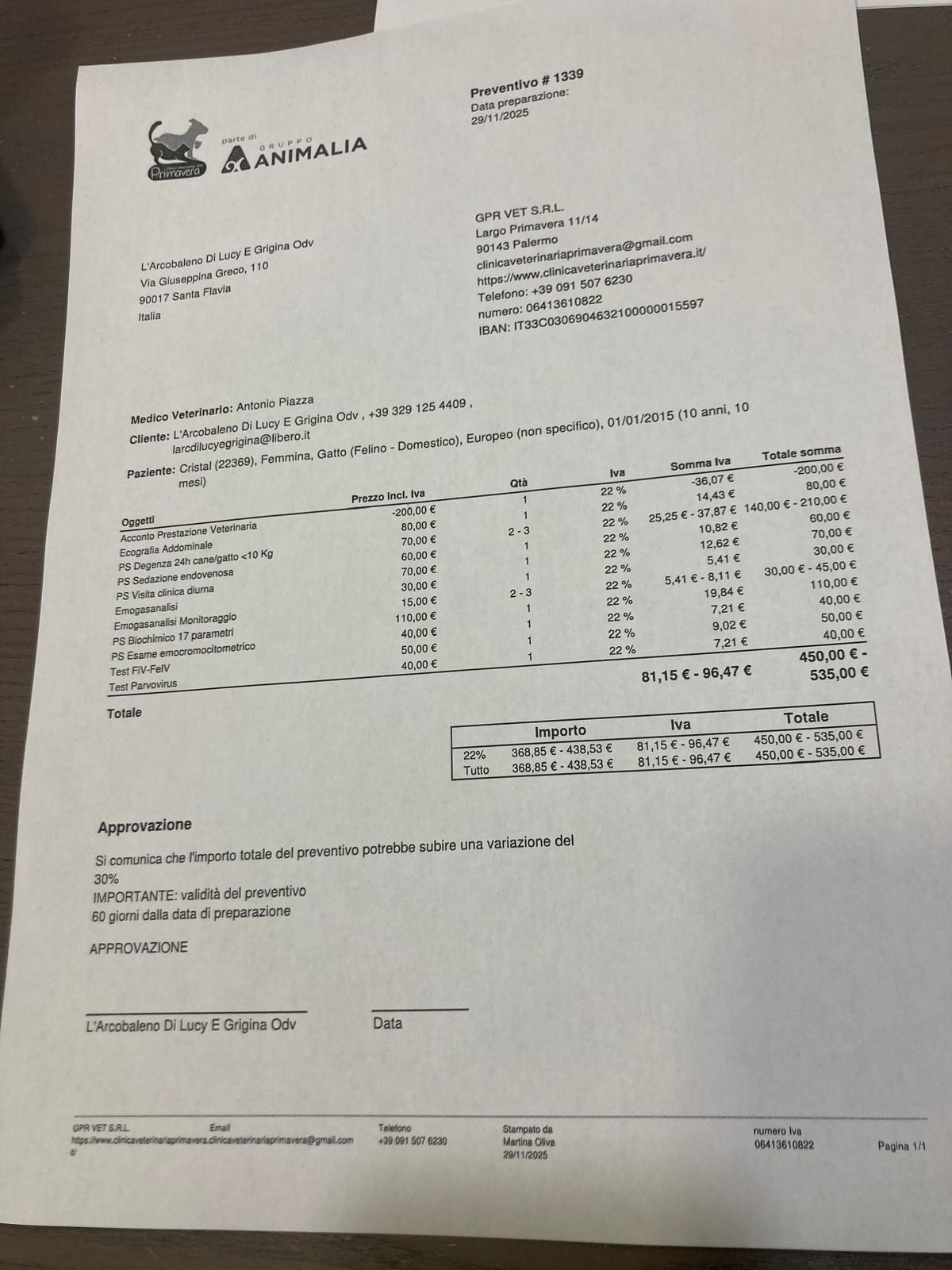 Alleghiamo preventivo fatto oggi al ricovero che può subire variazione in base a ciò che viene trovato.