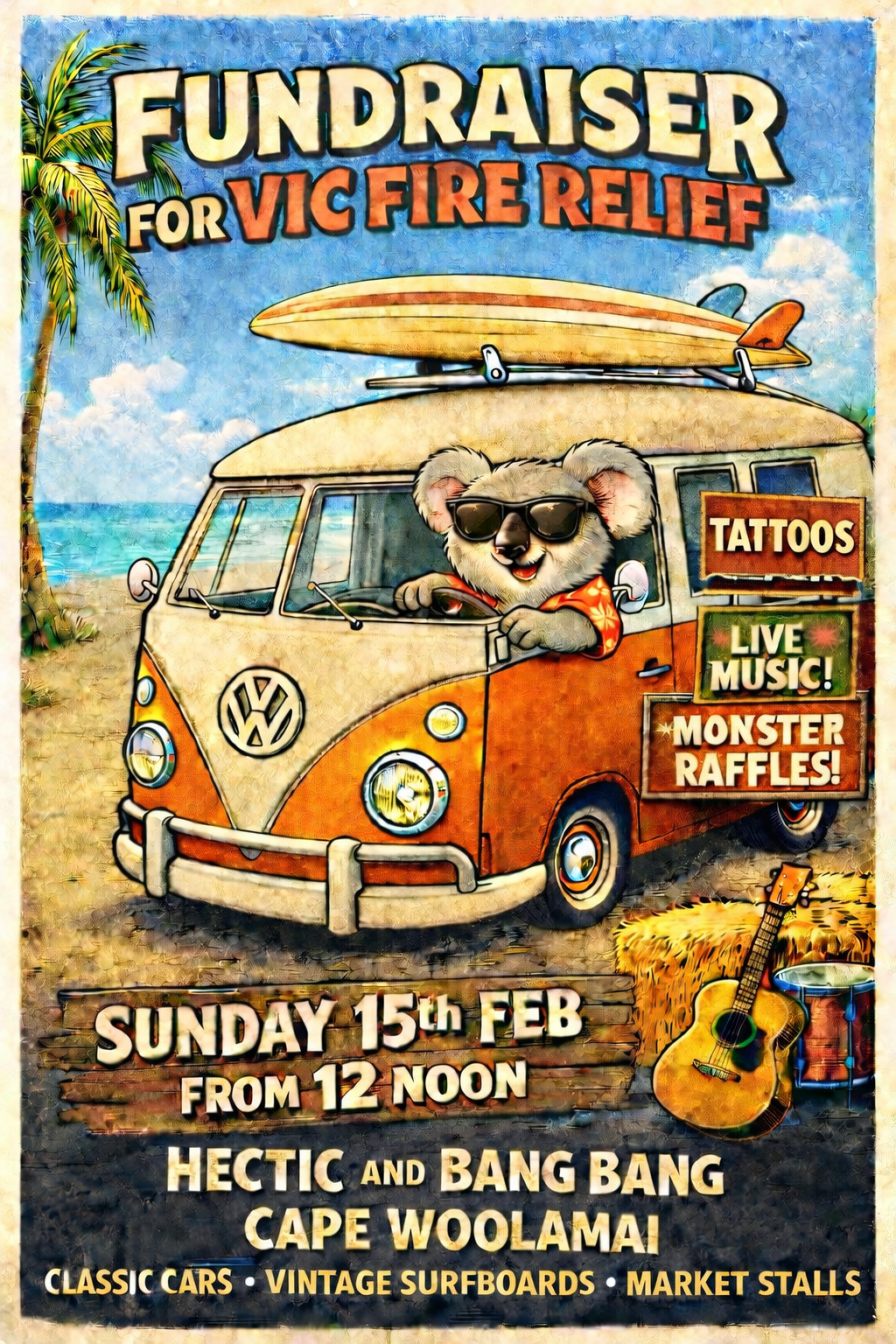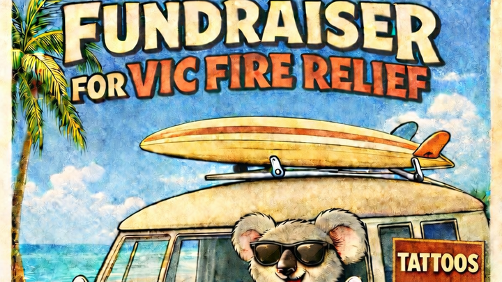 In response to the recent Victorian fires, this fundraiser brings together locals — including musicians, artists, and businesses — who have generously contributed their time and support to help those affected.