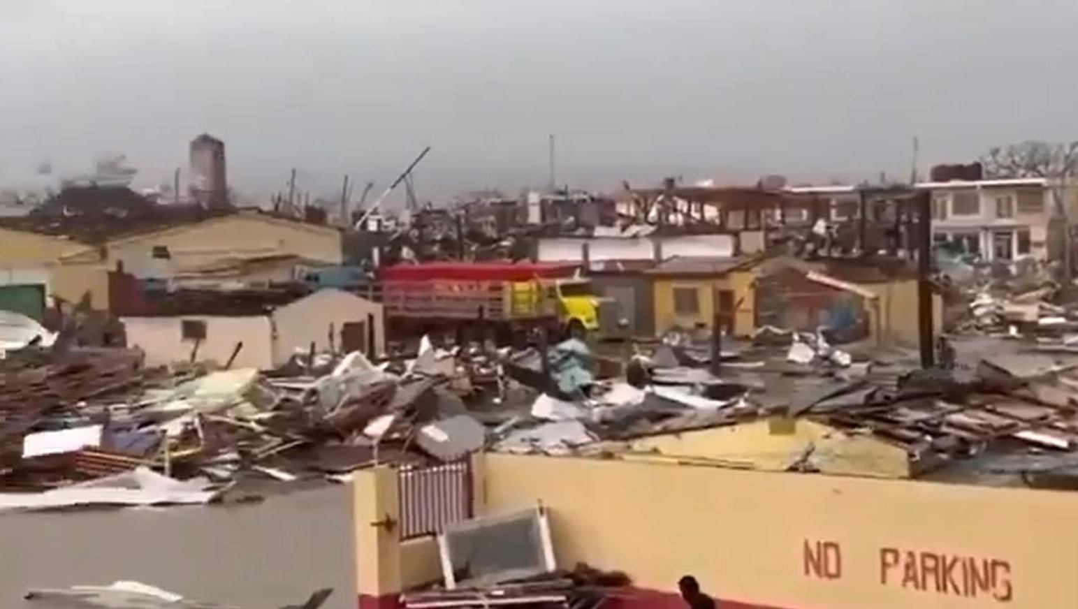 High Street in Black River (road towards local hospital has been destroyed by Hurricane Melissa)