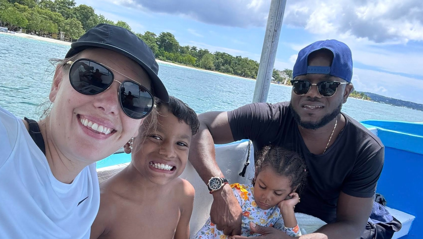 The Salmons (Emily, Jaden, Thea, and Marshal near their home in Jamaica)