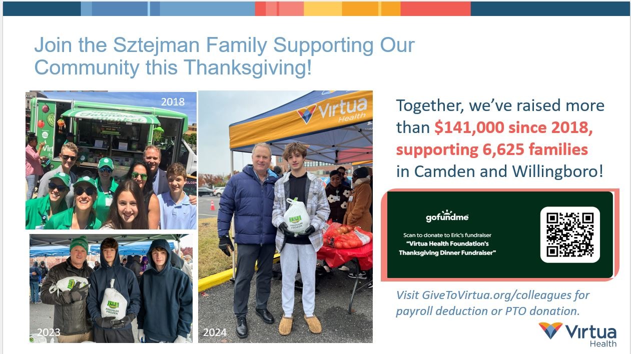For the seventh year, our family with the Virtua Foundation is coming together to support local families and need this Thanksgiving. Rising food prices, and living costs mean more people in our community are facing food insecurity. And we are asking for your help to make a difference.